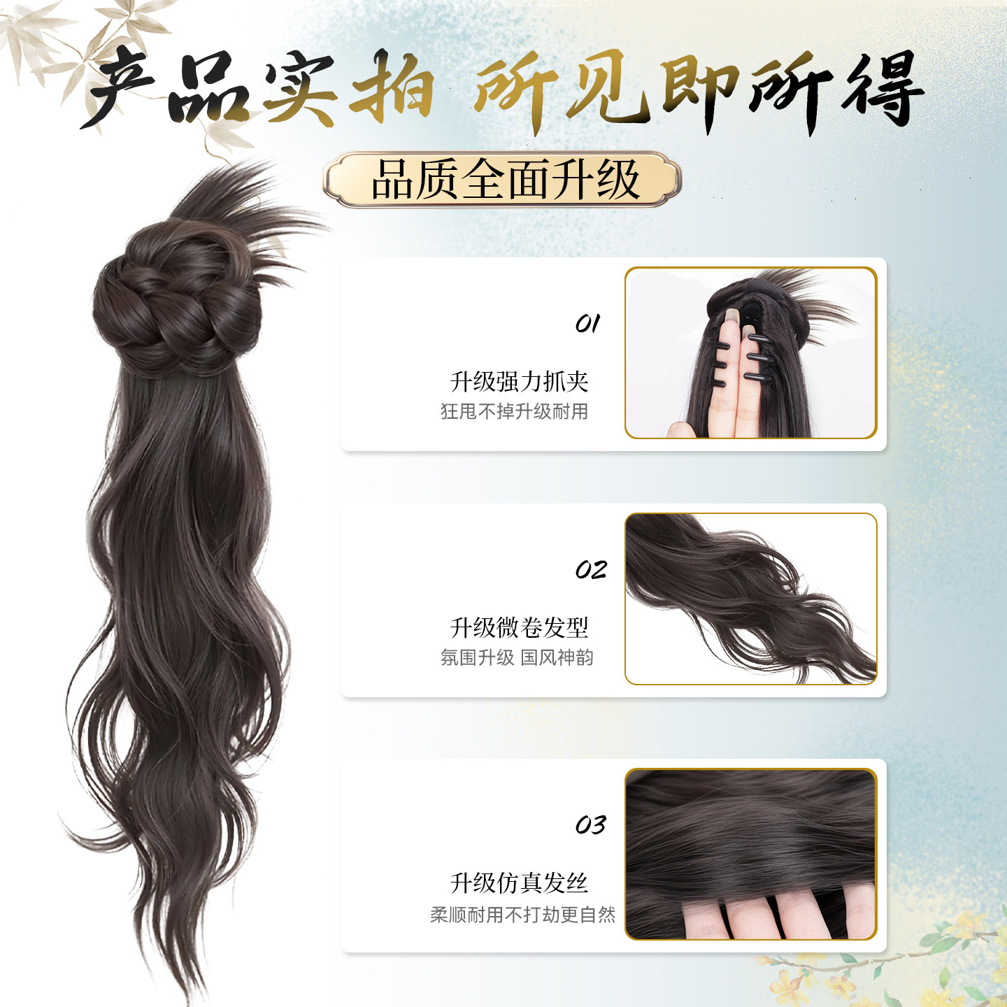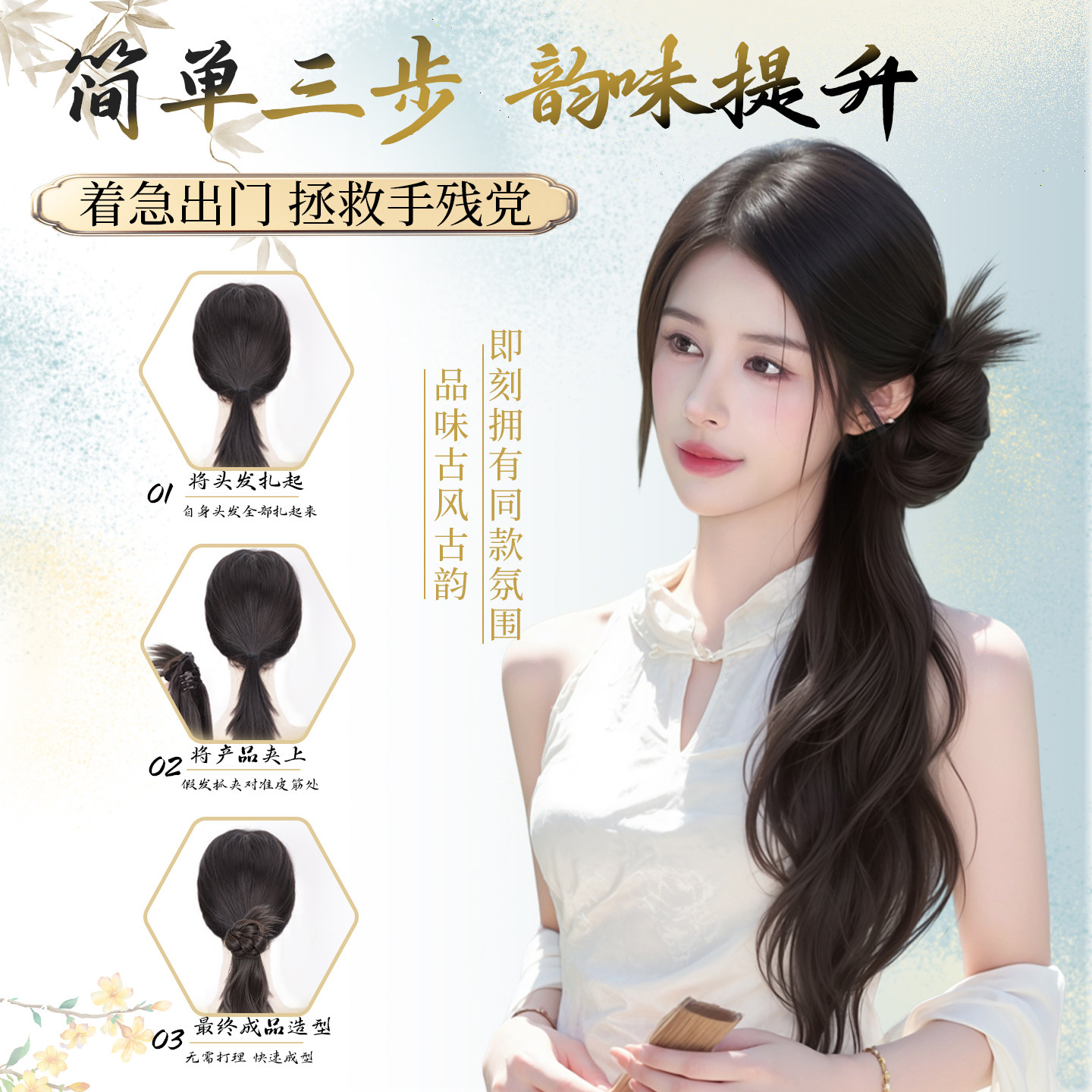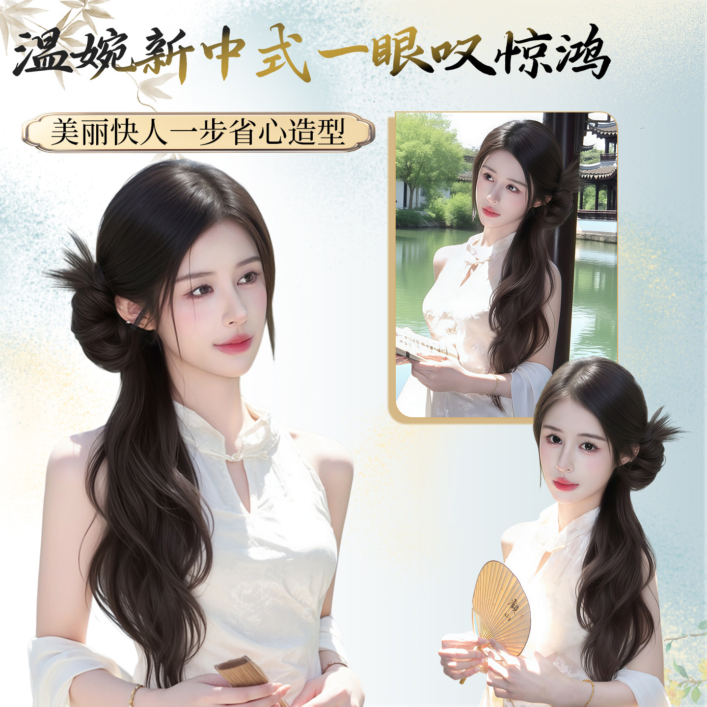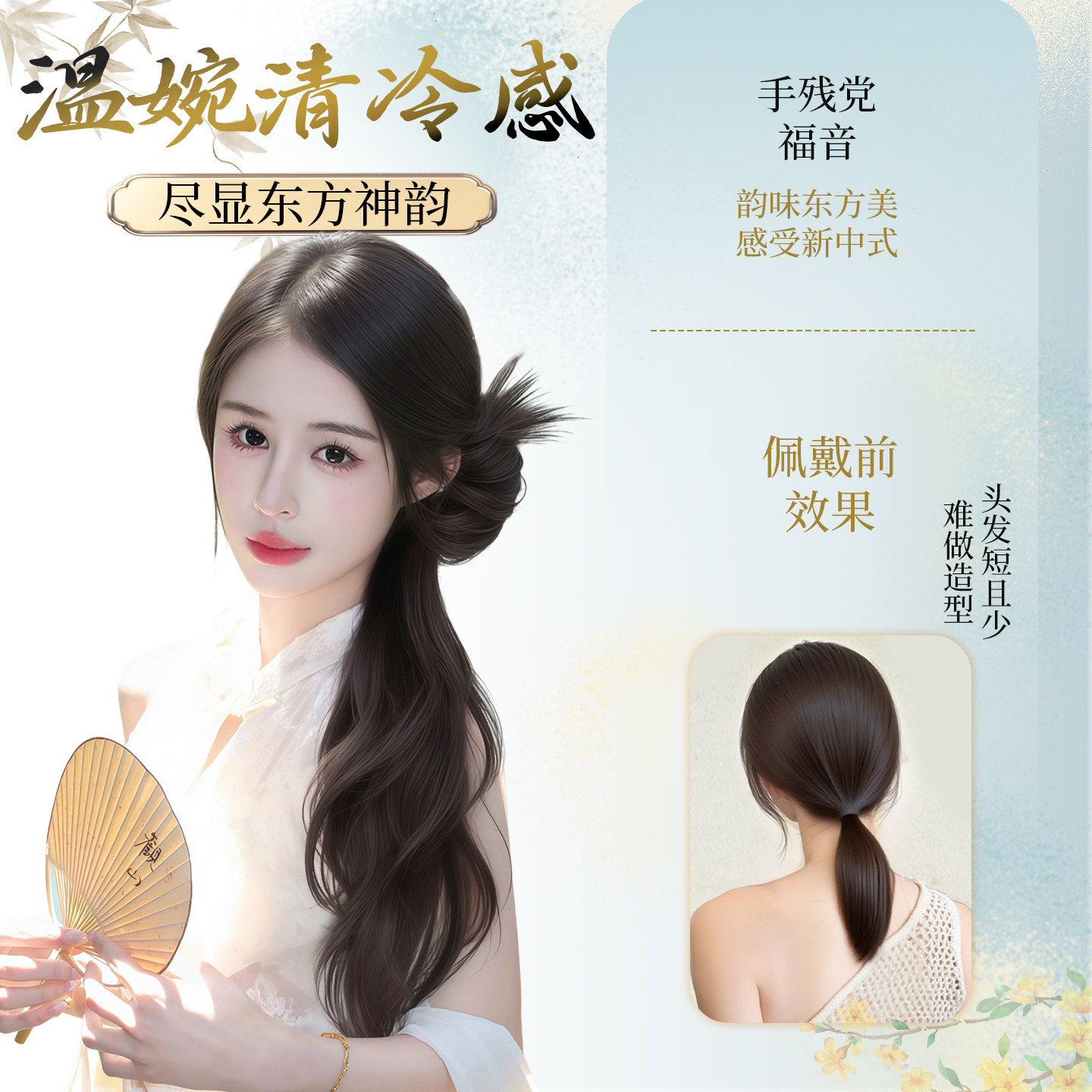 假发辫子女仿真发簪新中式长发侧边抓夹发饰古风汉服旗袍侧马尾辫