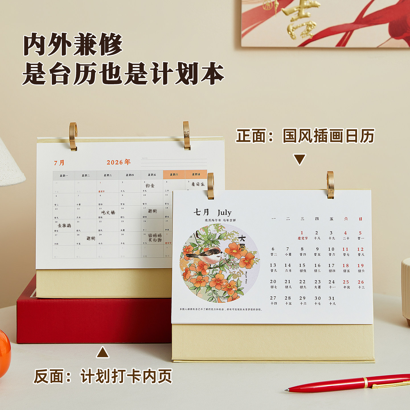 台历2026年新款日历定制logo创意简约小清新韩式办公年历个性中国风桌面摆件商务工作记事计划本订制广告月历