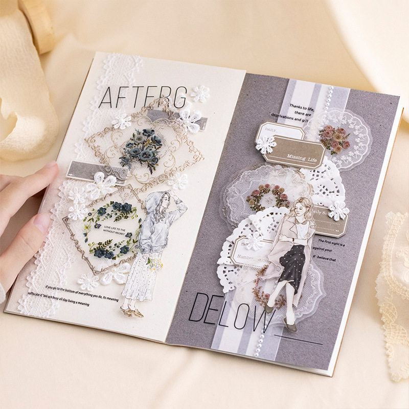 番茄酱pet贴纸包 琉璃纱系列 蕾丝主题仿真网纱蕾丝手账素材