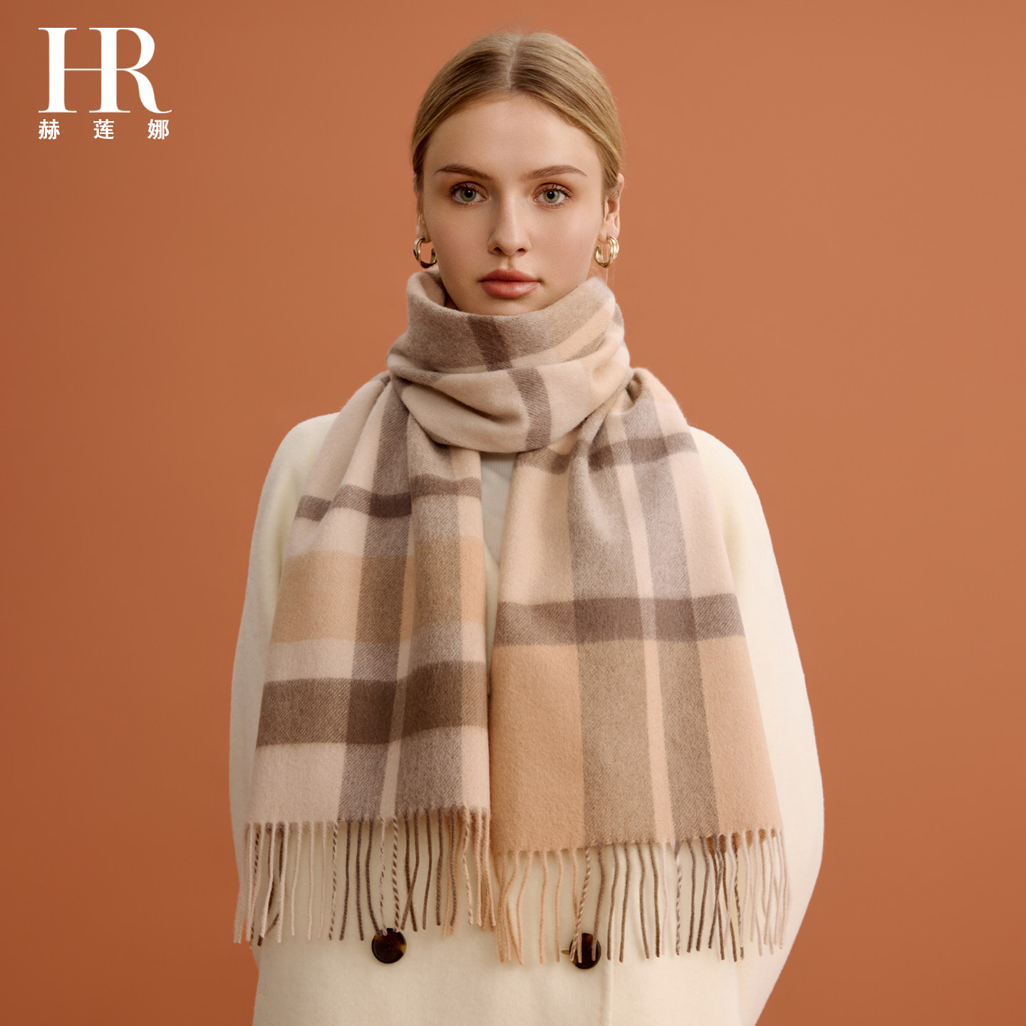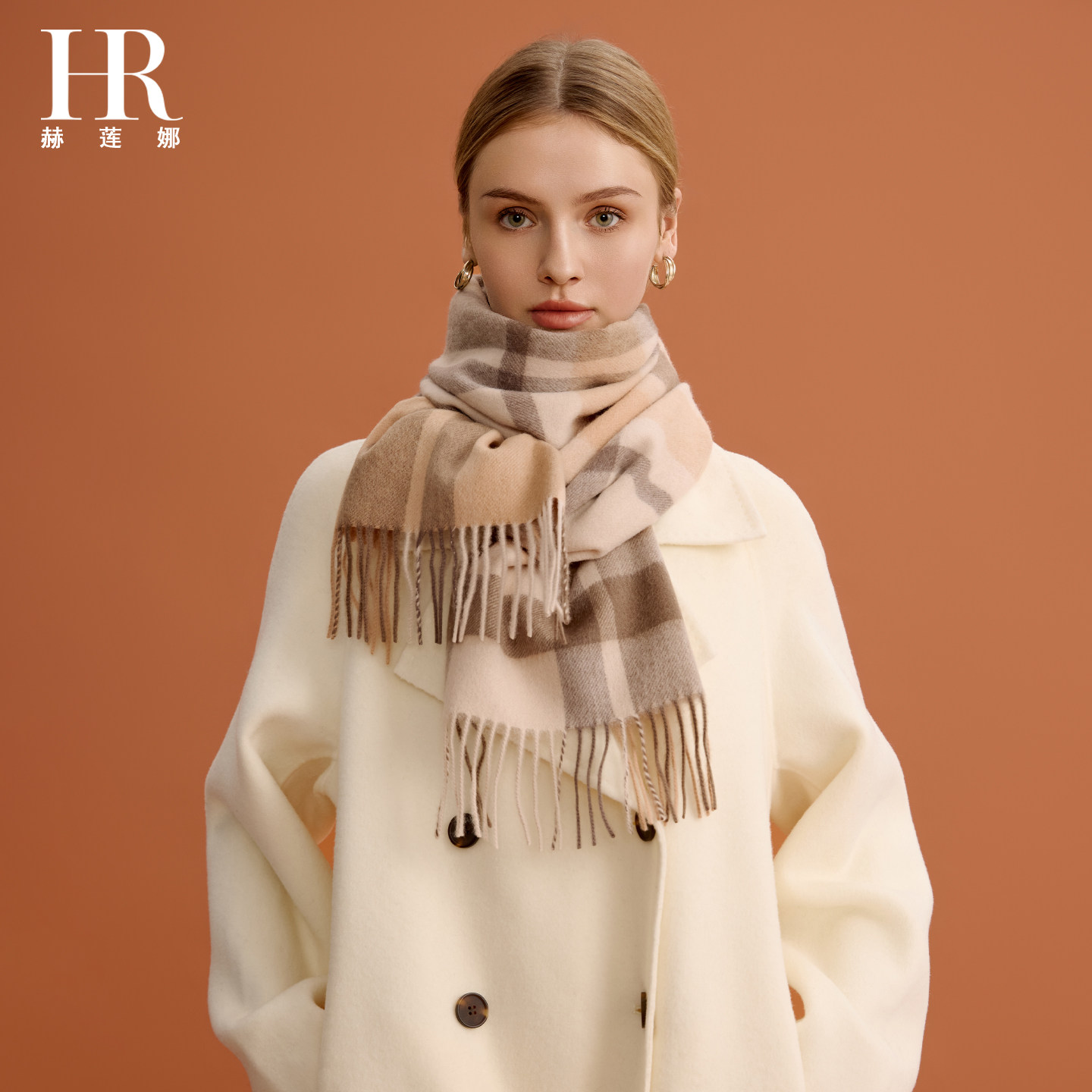 HR赫莲娜正品100%羊毛围巾披肩外搭女2025新款轻奢高级感格子围脖