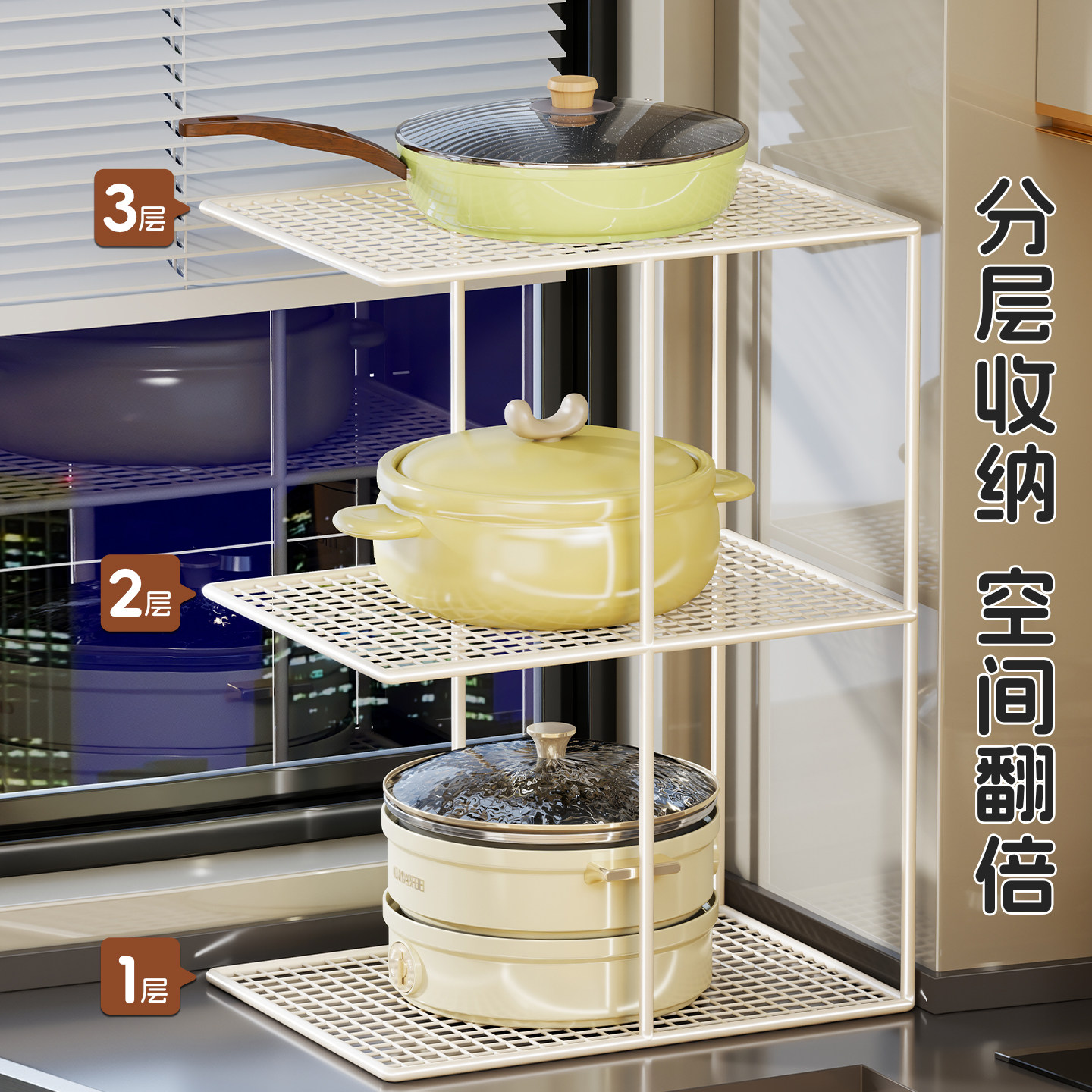 厨房置物架橱柜分层架灶台餐具整理架家用台面开放厨具瓢盆放置架