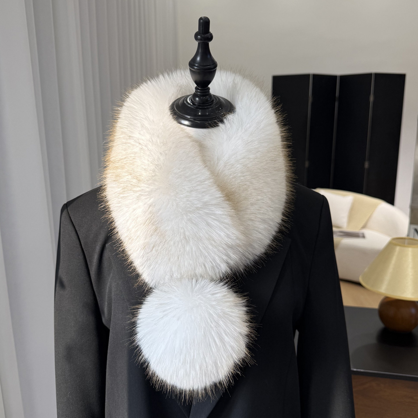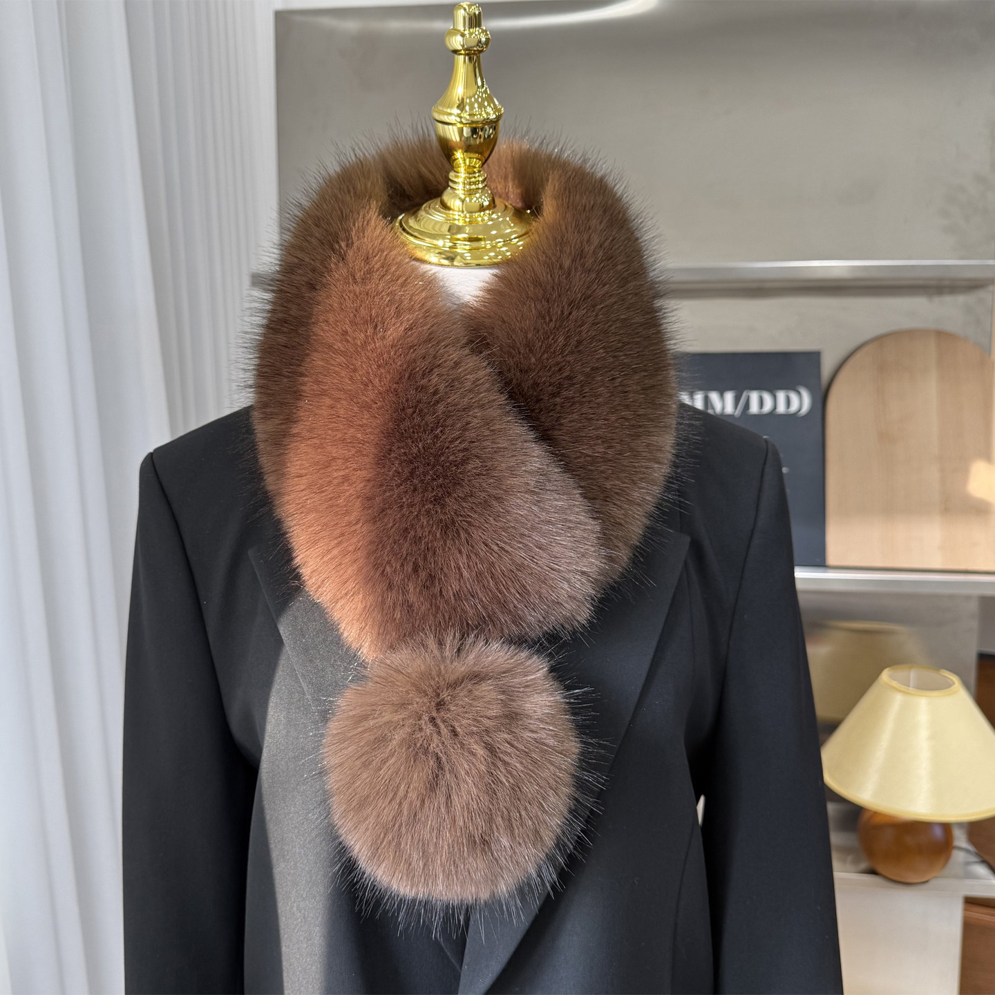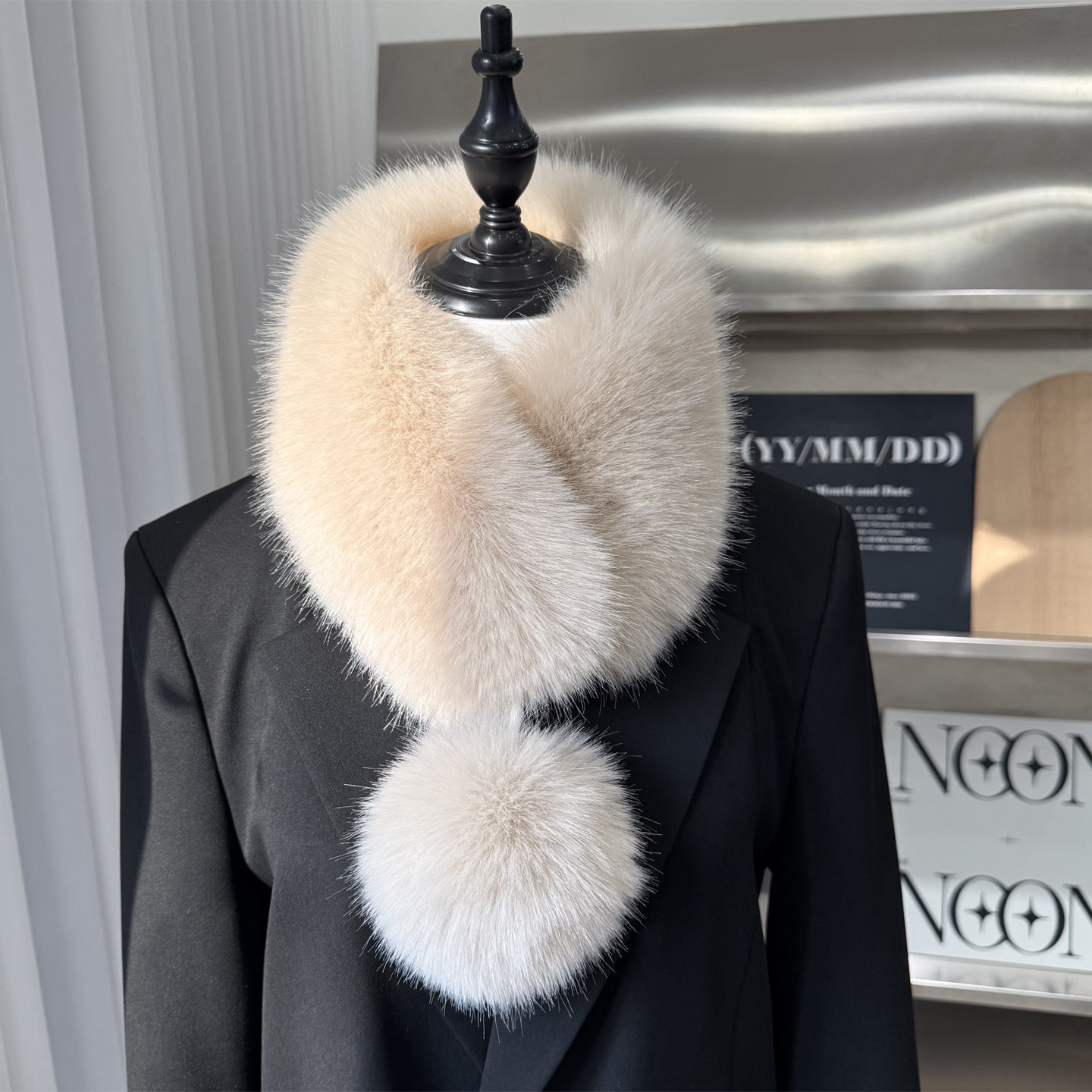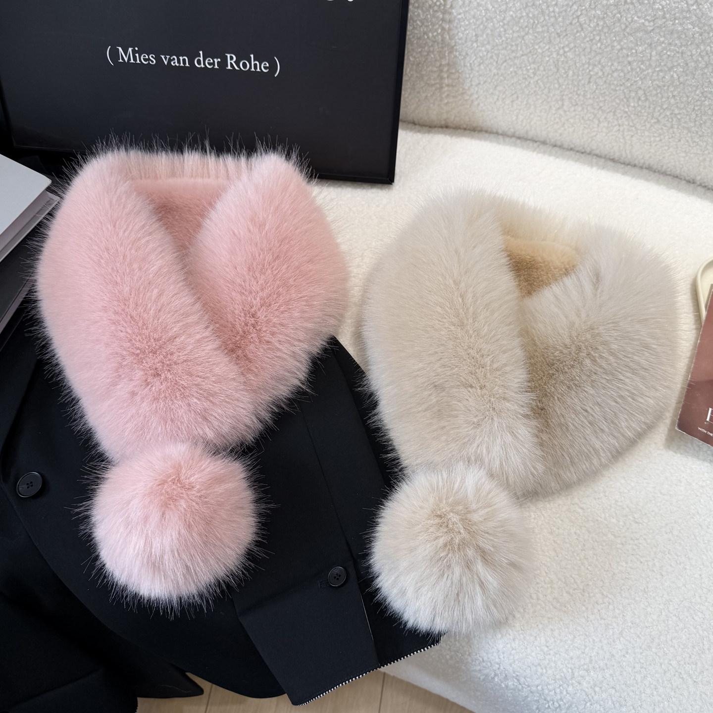 狐狸毛围巾冬季女双面保暖毛绒可爱毛球獭兔毛围脖领子皮草毛领