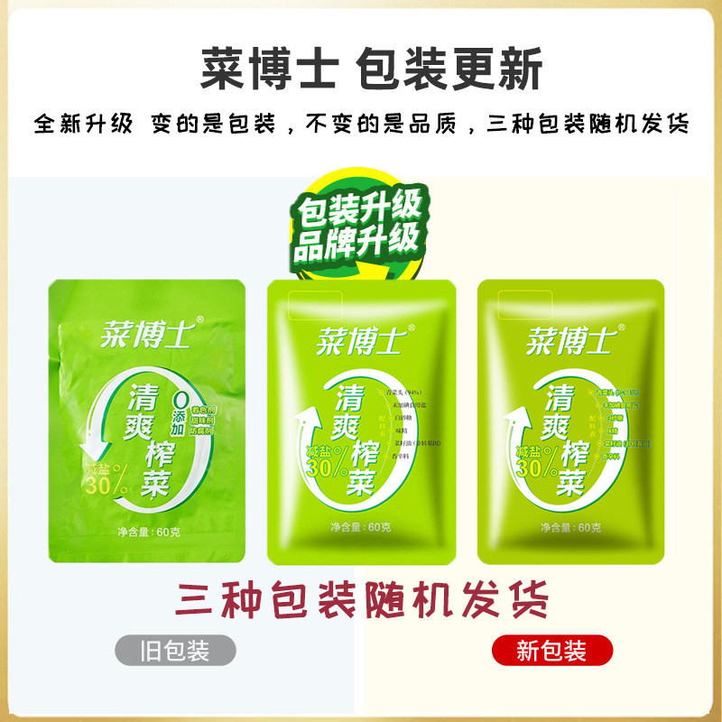 菜博士0添加榨菜60g*3无防腐剂轻盐榨菜丝下饭菜咸菜小菜不辣国货