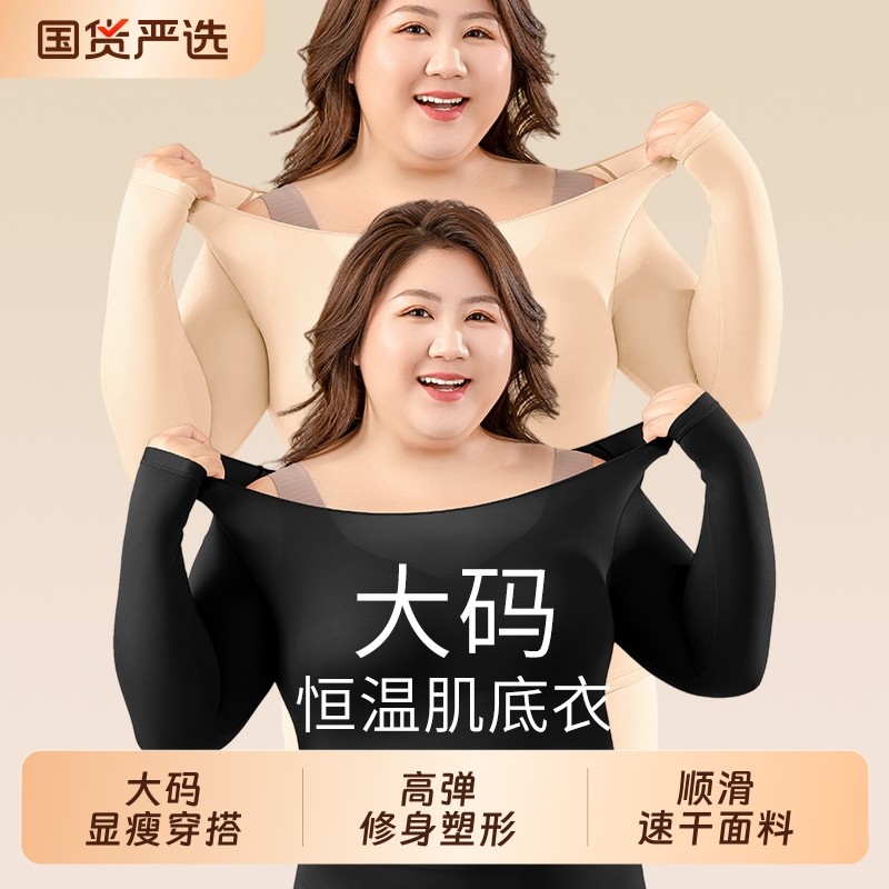 大码保暖内衣美肤发热秋衣秋裤套装胖mm200斤超薄面膜肌冬季恒温