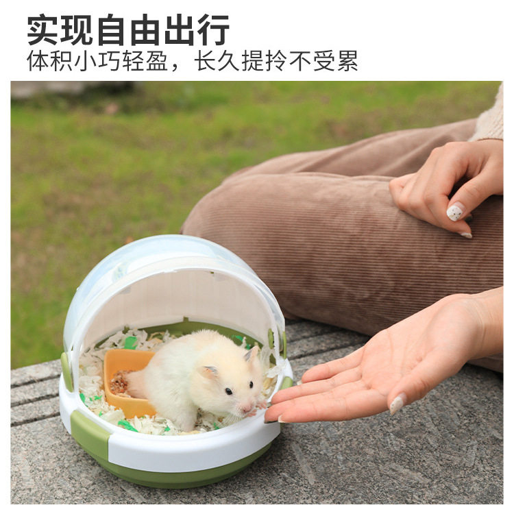 新款太空舱UFO仓鼠外带笼金丝熊龙猫饲养箱透气出行笼子带饮水器