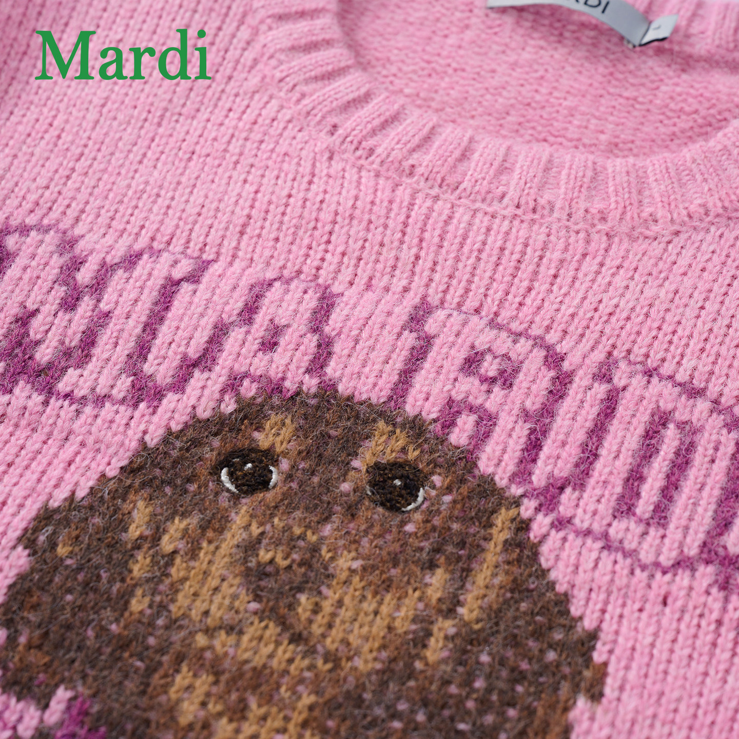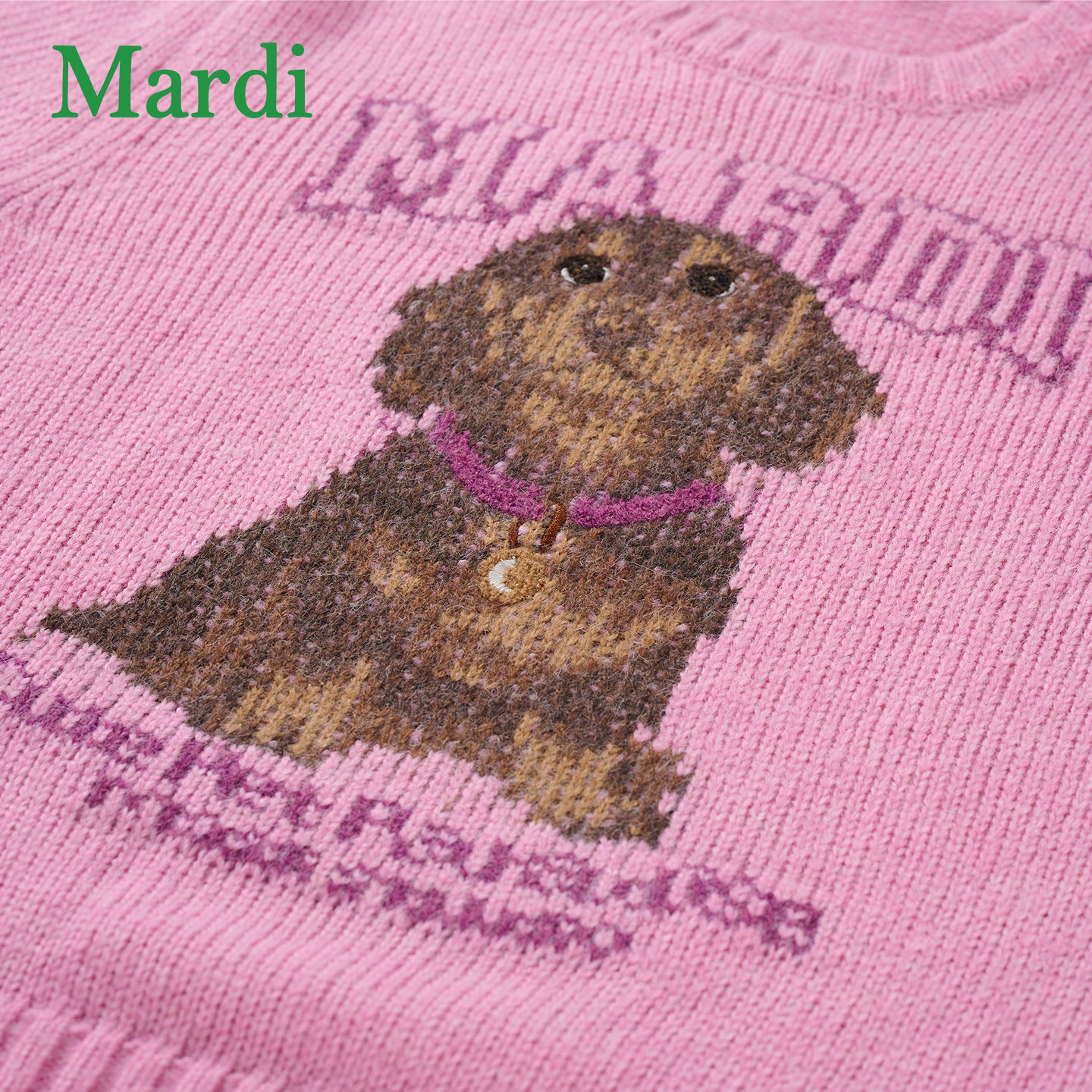 MARDI卡通小狗毛衣女图案圆领新款休闲时尚上衣针织衫粉色少女