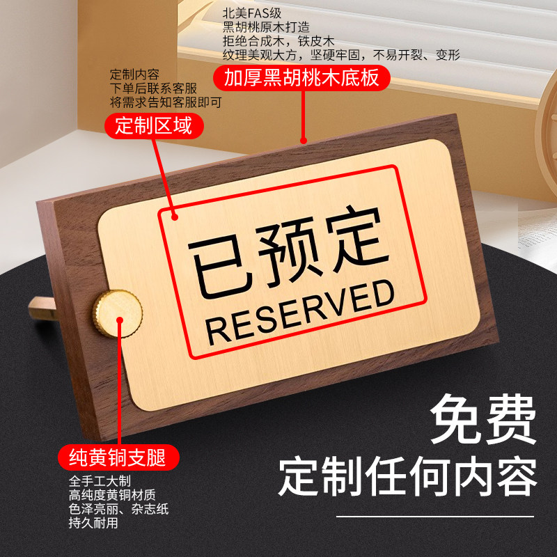 已预定桌牌餐饮留座预留位高档餐厅饭店酒店包厢预订牌订位订座等位座位订餐台卡订制餐饮店留坐桌号台牌定制