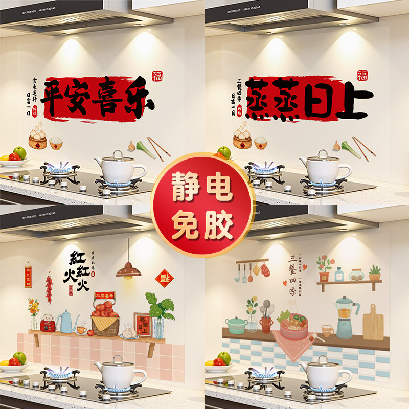 厨房防油贴纸蒸蒸日上灶台防水静电墙贴防火耐高温新居墙面装饰