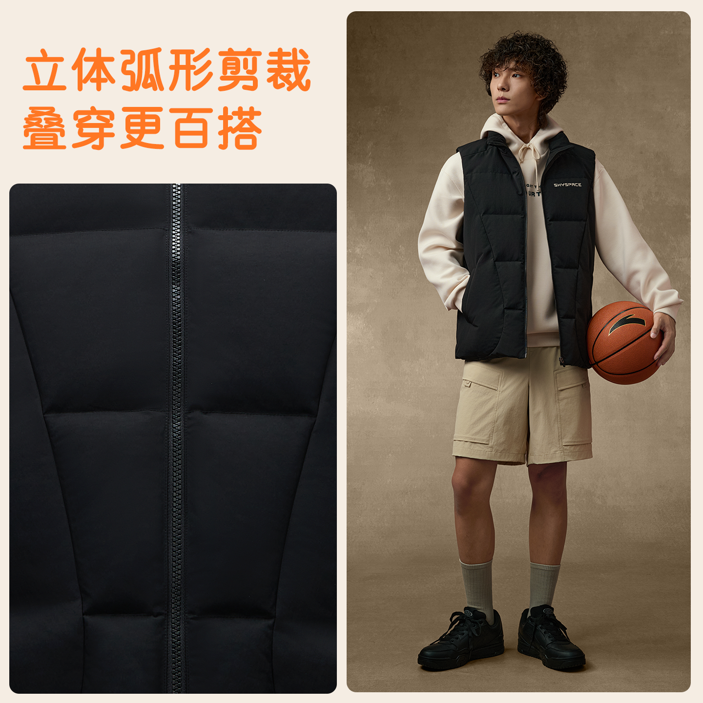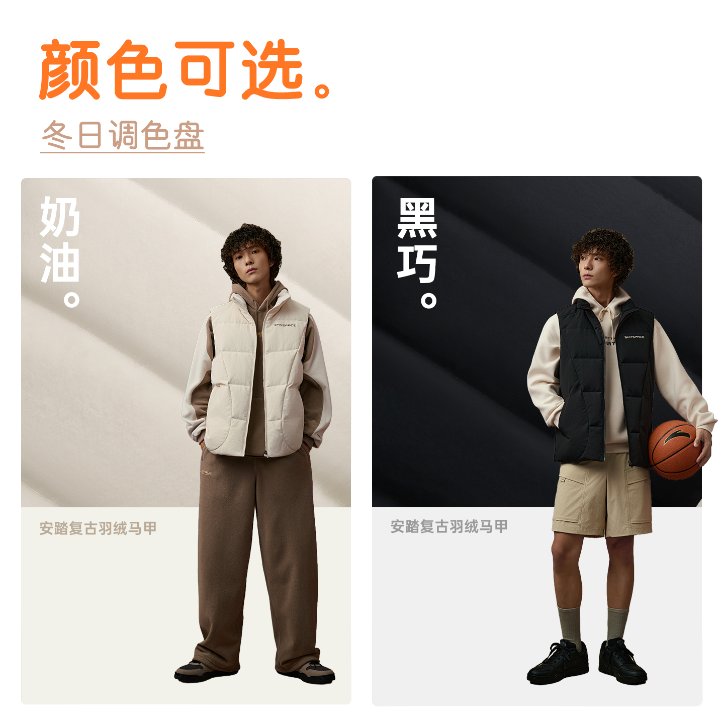 安踏美式复古羽绒服马甲男2025冬季新款时尚休闲防风立领棉服背心