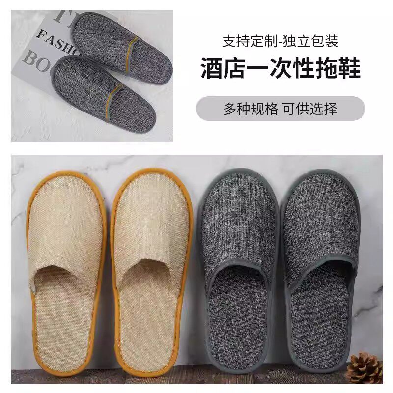一次性拖鞋亚麻酒店宾馆专用居家待客便携防滑加厚独立包装民宿用