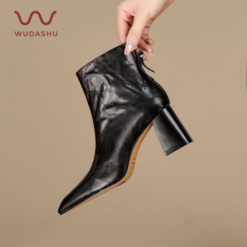 吴大叔2025秋冬时尚加绒女靴复古方头粗跟切尔西靴英伦风百搭短靴