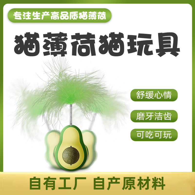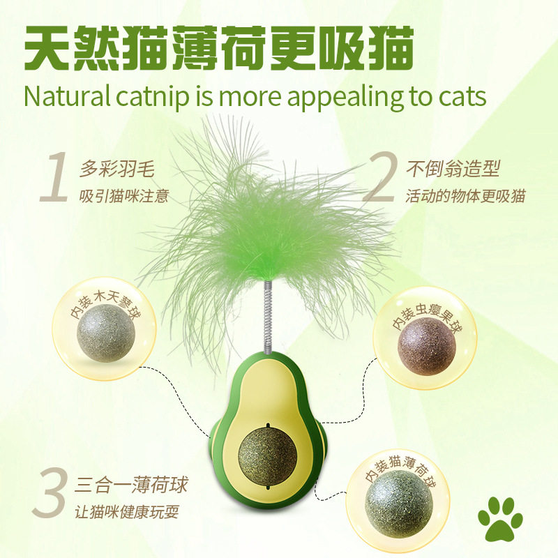 舔舔乐牛油果猫玩具厂家销售猫薄荷玩具球360度旋转自动逗猫玩具