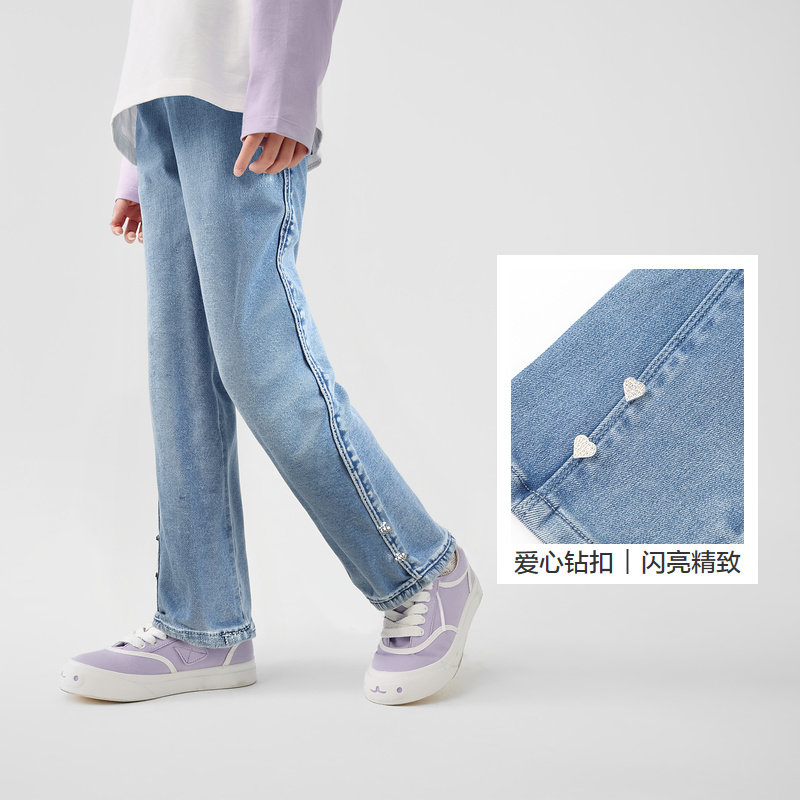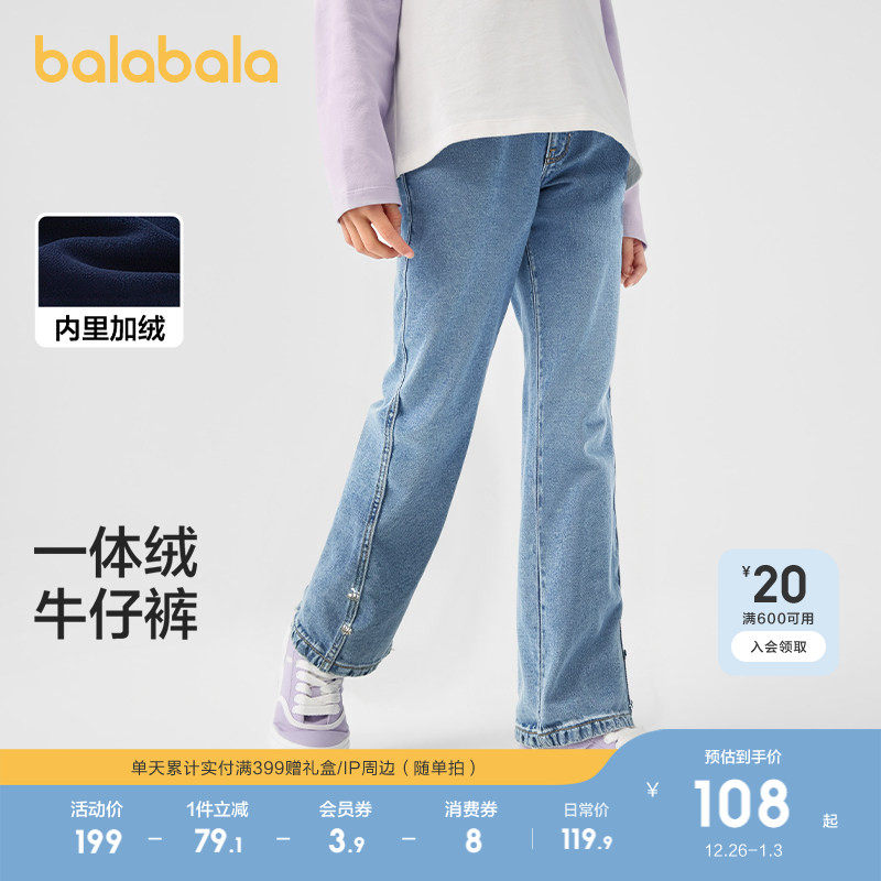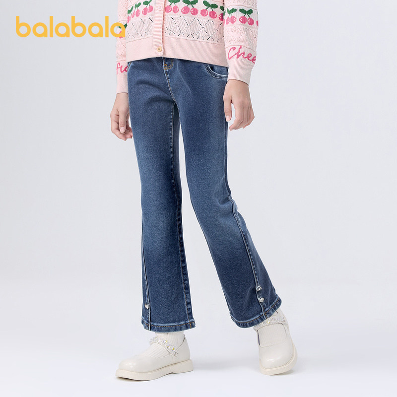 巴拉巴拉童装儿童长裤女童新秋冬加绒牛仔喇叭裤复古保暖加厚休闲