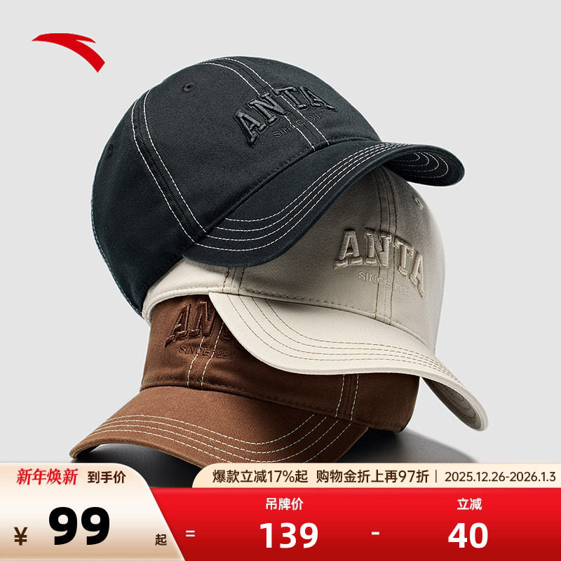 安踏棒球帽男女四季通用休闲百塔复古潮流帽子日常遮阳防晒通勤帽