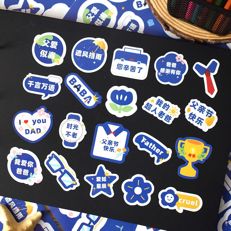 父亲节快乐礼物封口贴学校老师班级活动小学生礼品袋装饰异形贴画公司福利感谢贴纸幼儿园儿童感恩蓝色小图标