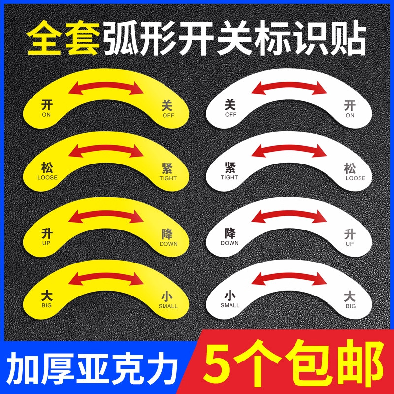 机械设备按钮标签标识牌急停开关停止电源指示箭头转方向弧形左开右关左松右紧电气标识安全警告贴纸定做升降