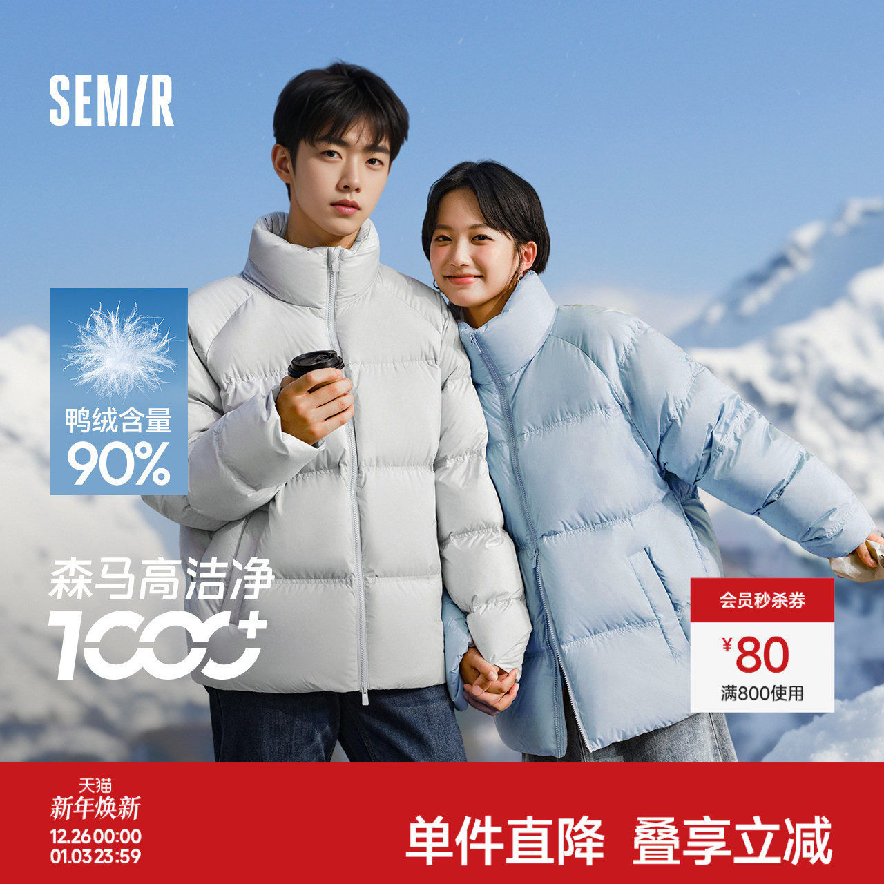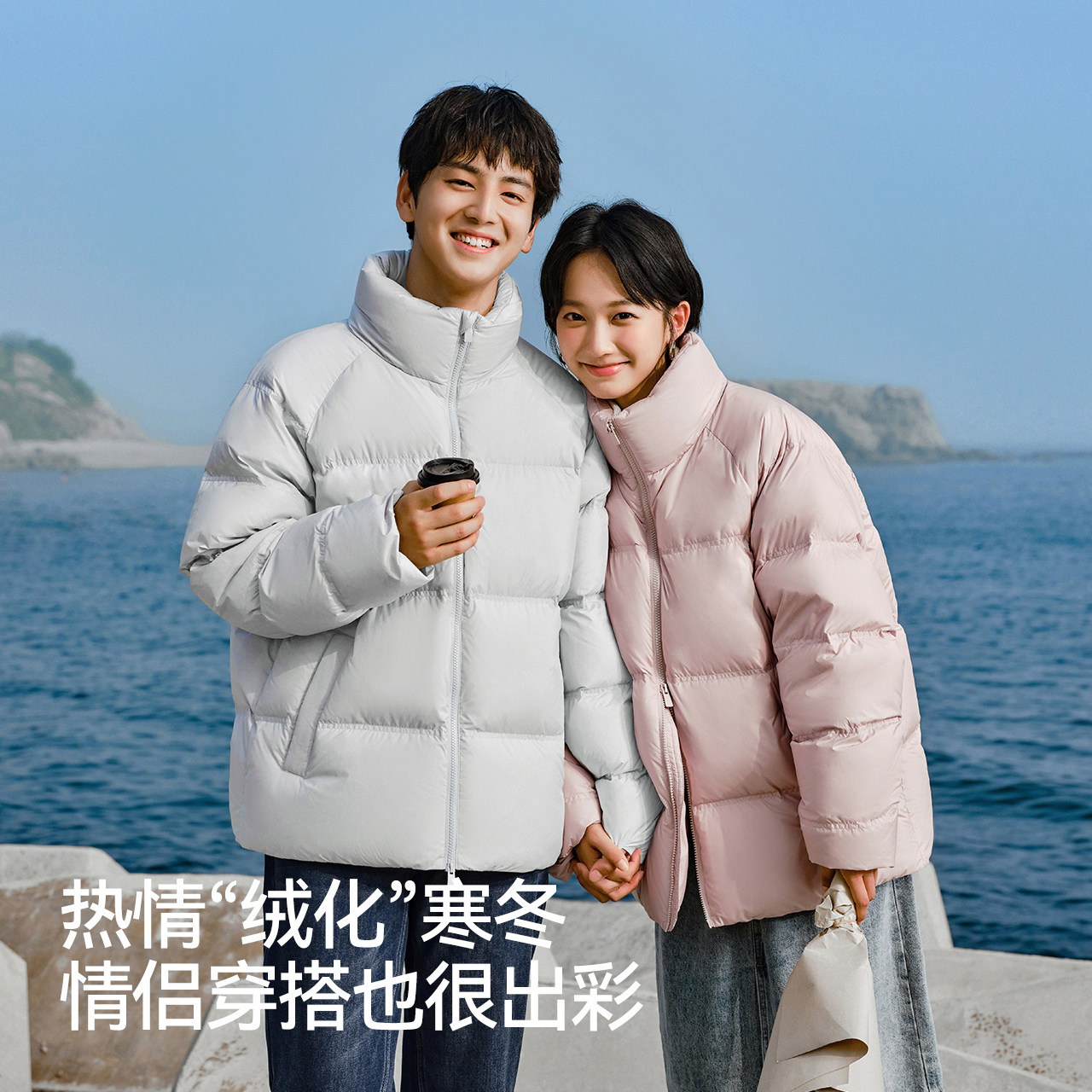 男女同款森马羽绒服男宽松短款情侣装2024冬季外套三防面包服白色