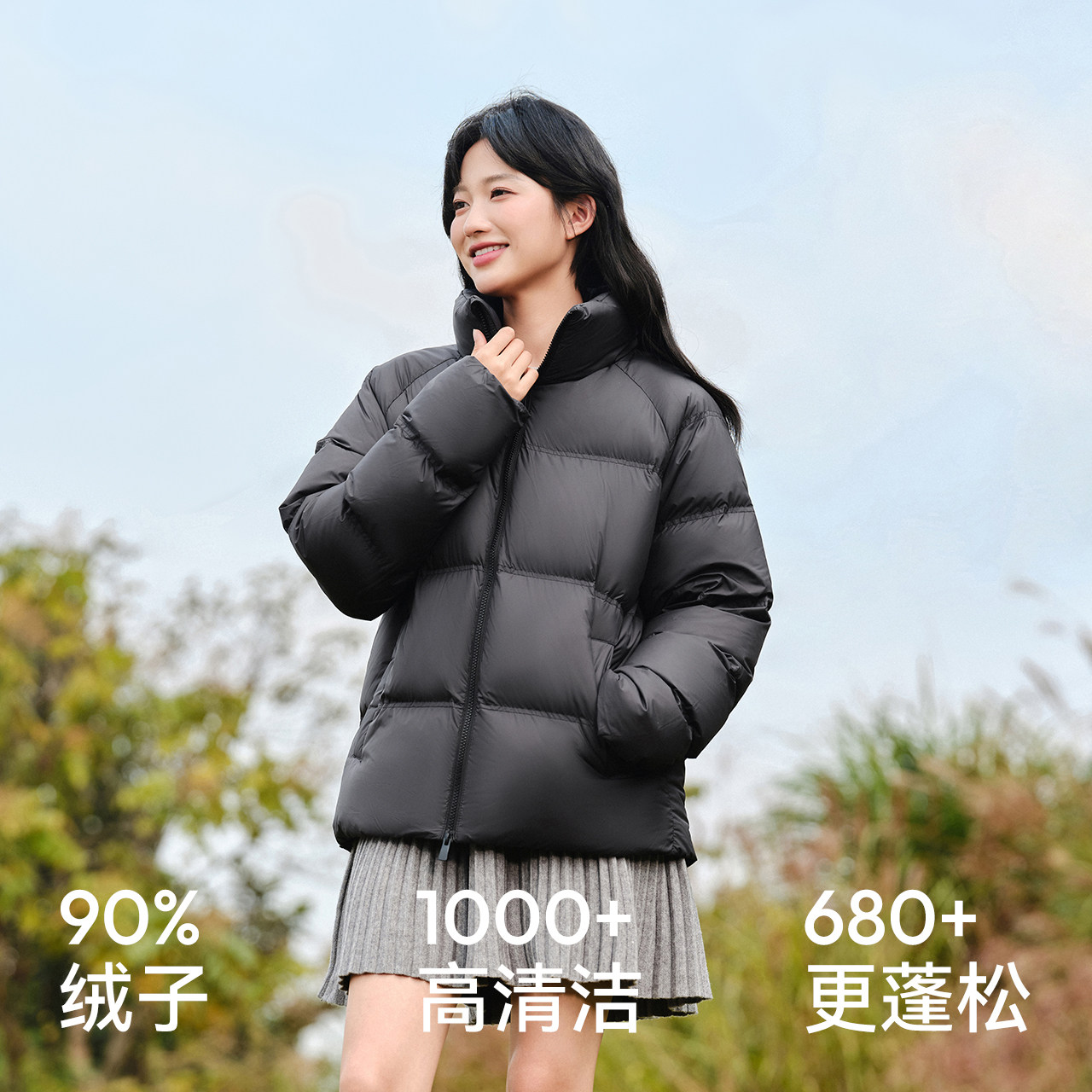 骆驼男装秋冬黑色加厚保暖鸭绒短款面包服男女同款防水羽绒服外套