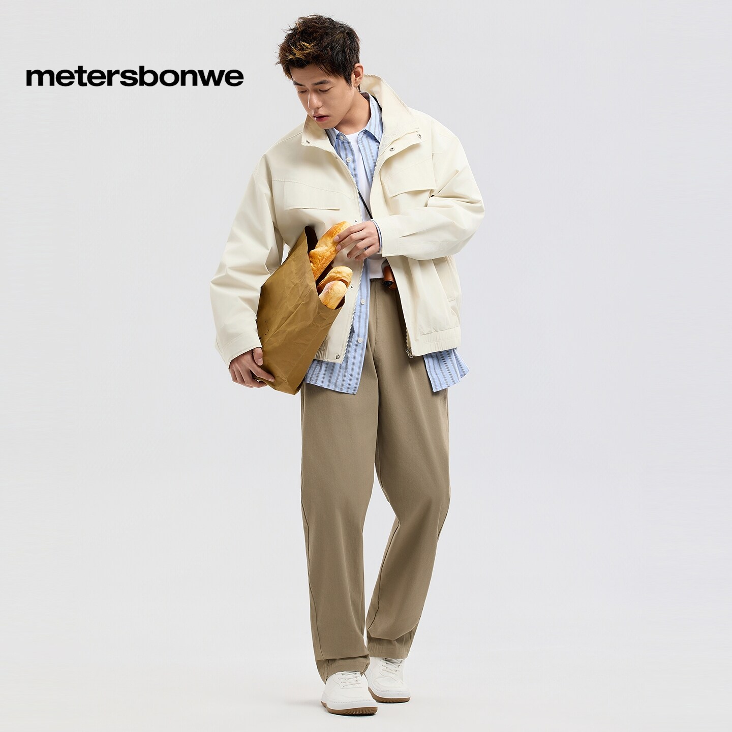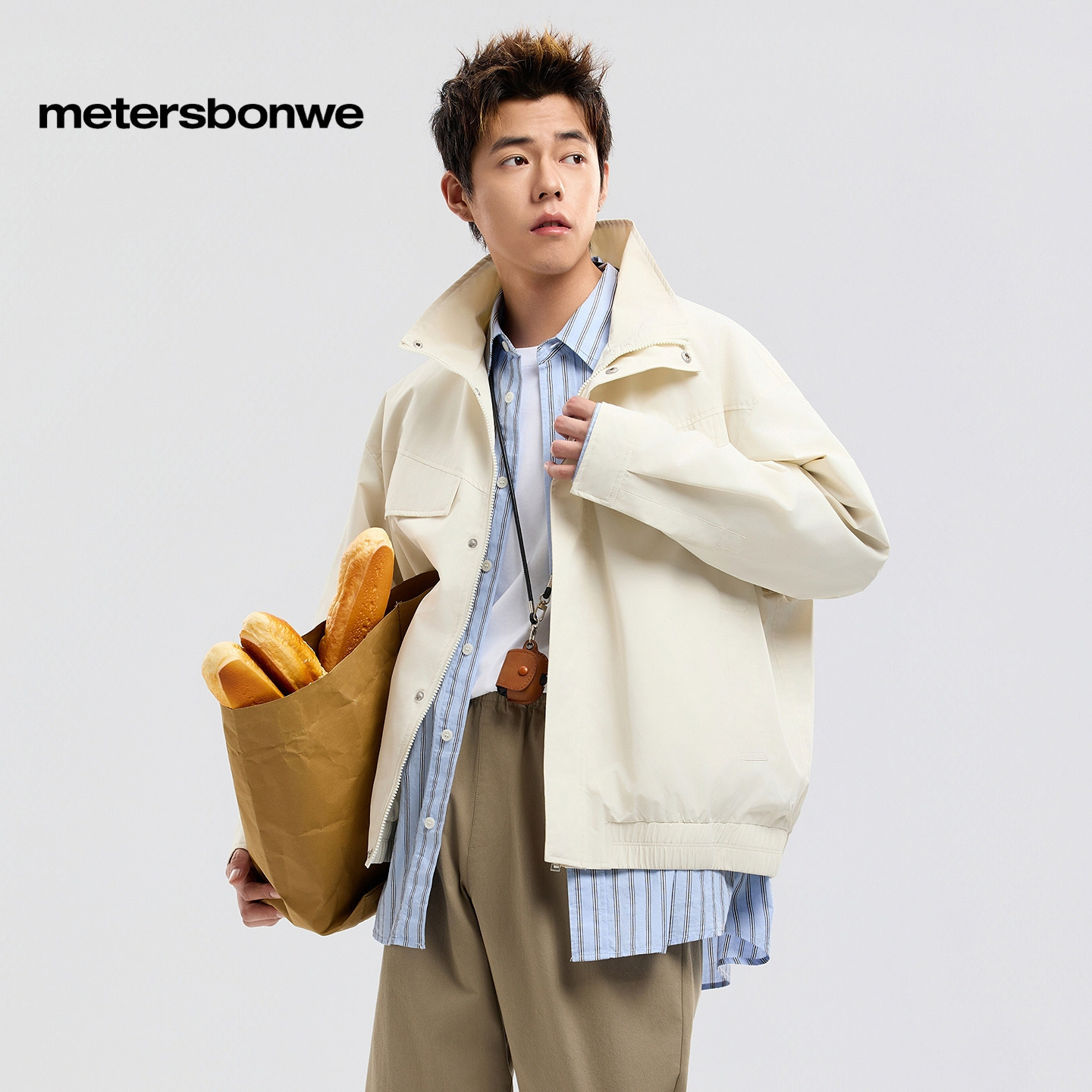美特斯邦威夹克男2026春季新款潮流宽松廓形简约舒适休闲立领外套