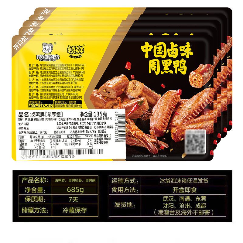 周黑鸭卤鸭脖135g鸭锁骨150gX2鸭翅125gX2小吃零食卤味鸭肉