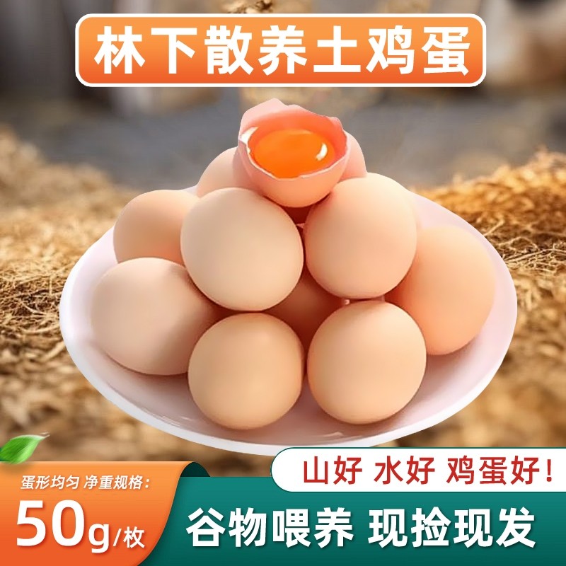 土鸡蛋正宗林下散养笨鸡蛋月子营养溏心蛋±50g湖北大别山谷物蛋