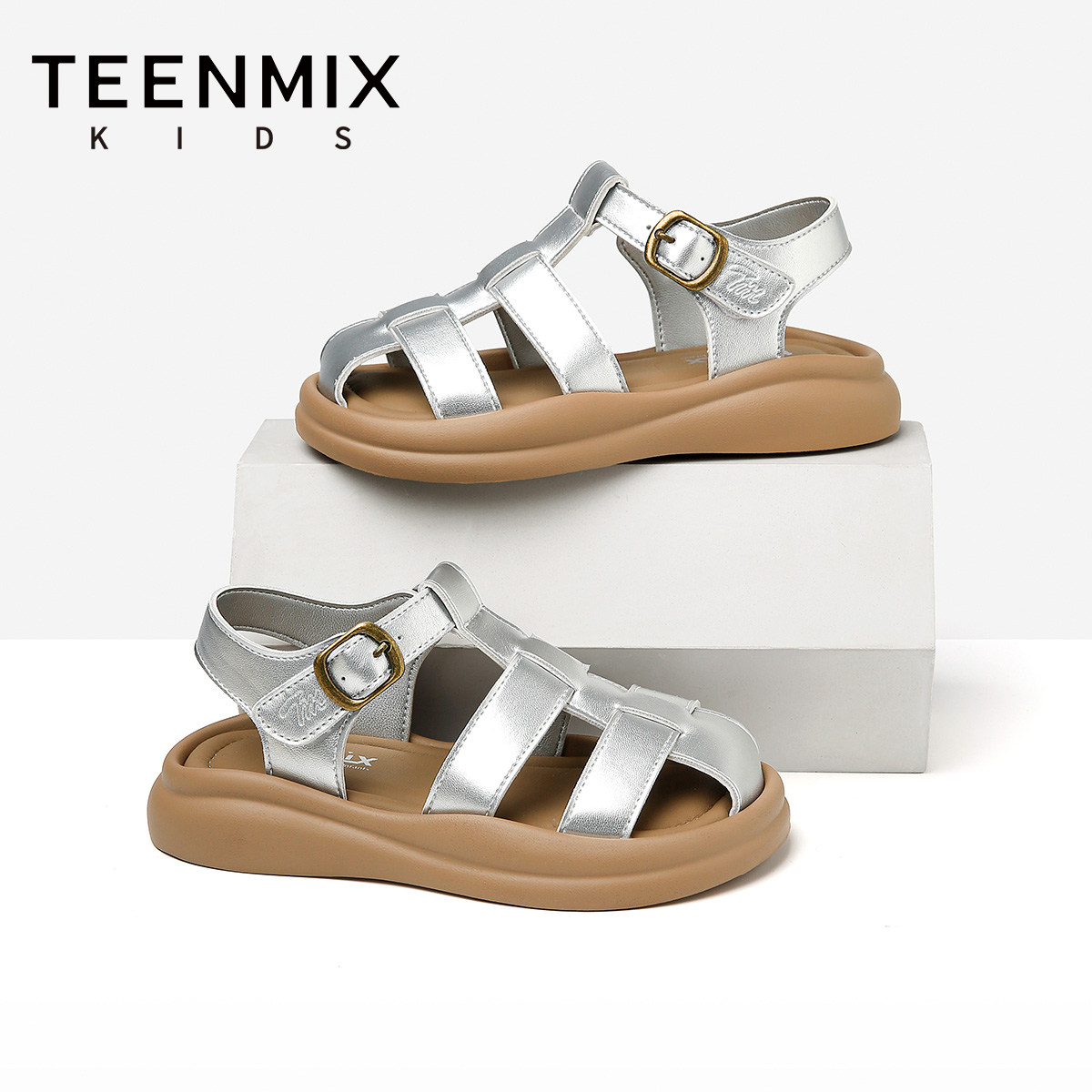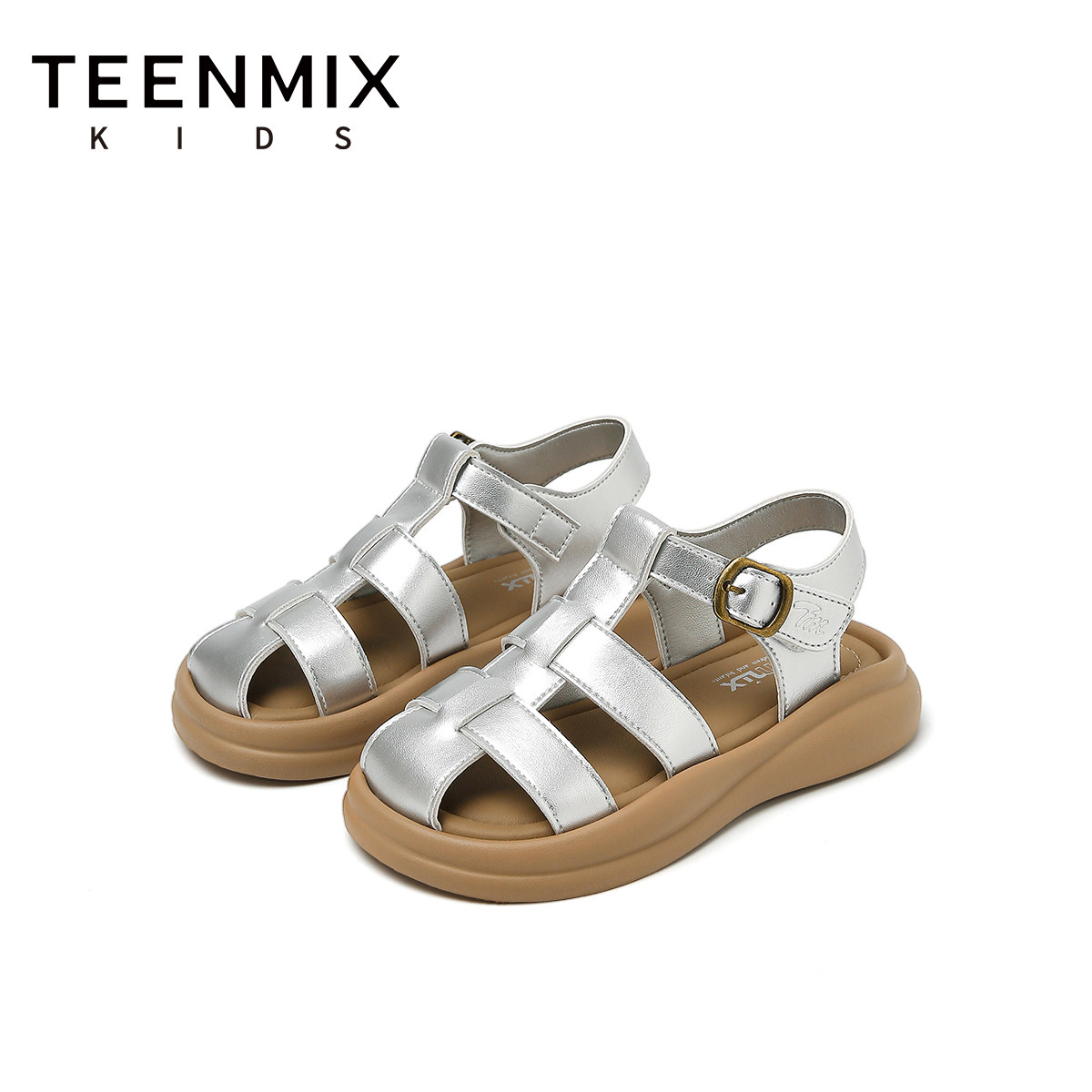 天美意童鞋2026年夏季新款女孩凉鞋罗马鞋女童软底舒适休闲鞋子