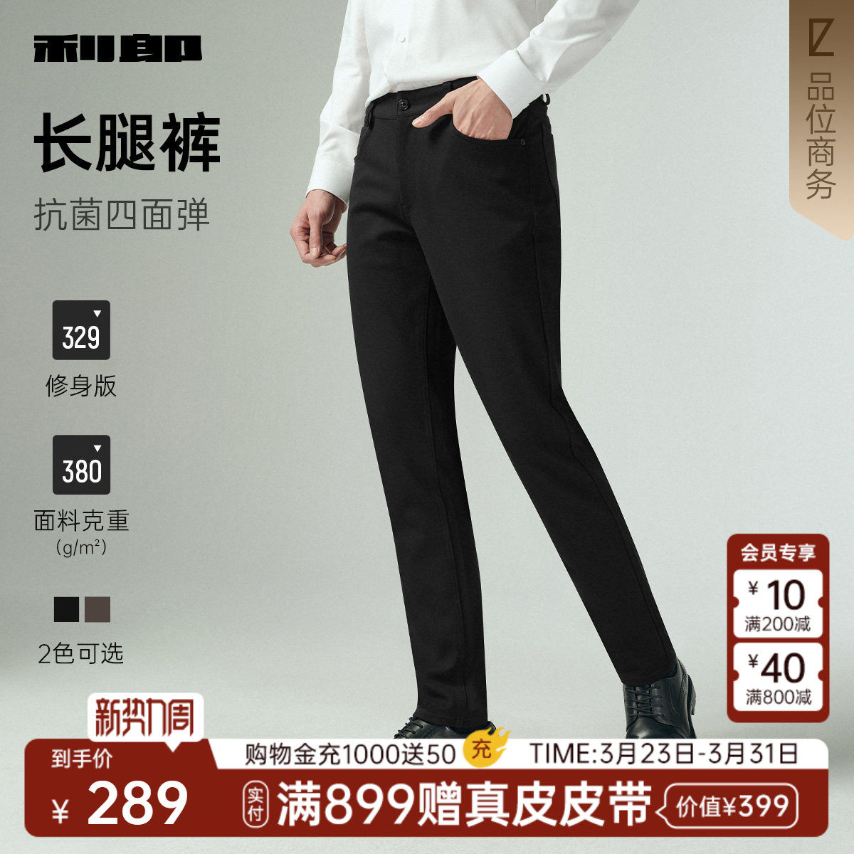 【抗菌/四面弹力/修身】利郎商务休闲裤男士长裤春秋款新款裤子