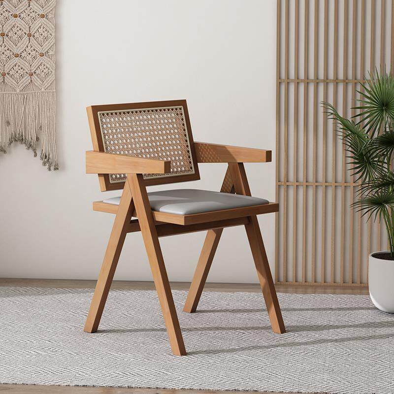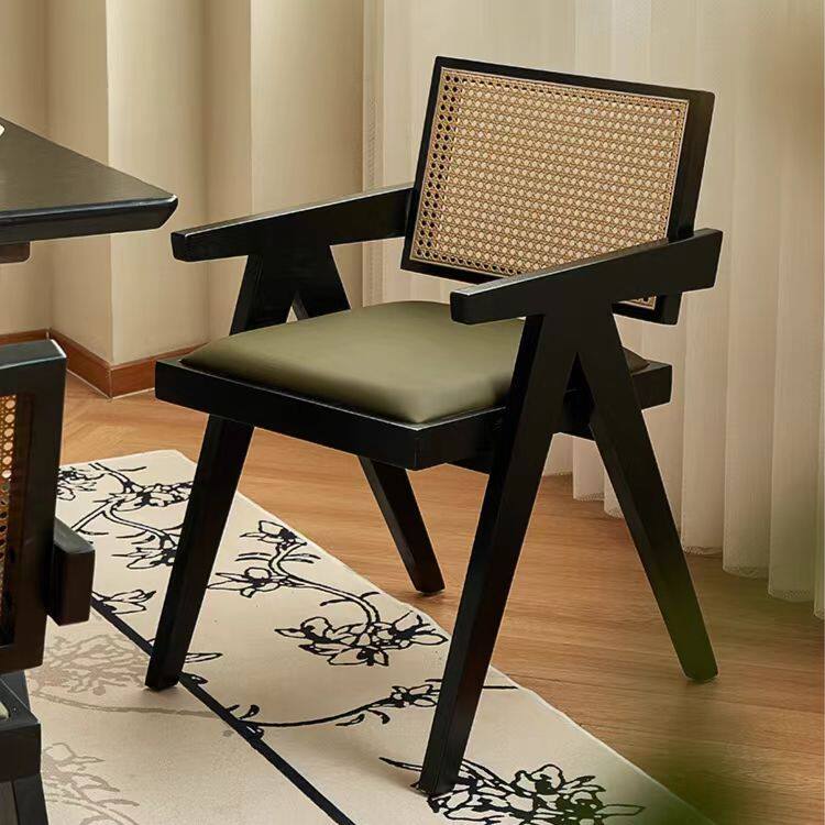 b北欧实木藤编椅复古真藤餐椅侘寂风昌迪加尔椅民宿咖啡厅藤编椅