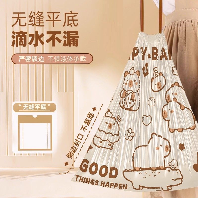 免撕垃圾袋家用加厚手提式抽绳大号厨房清洁印花垃圾带宿舍塑料袋
