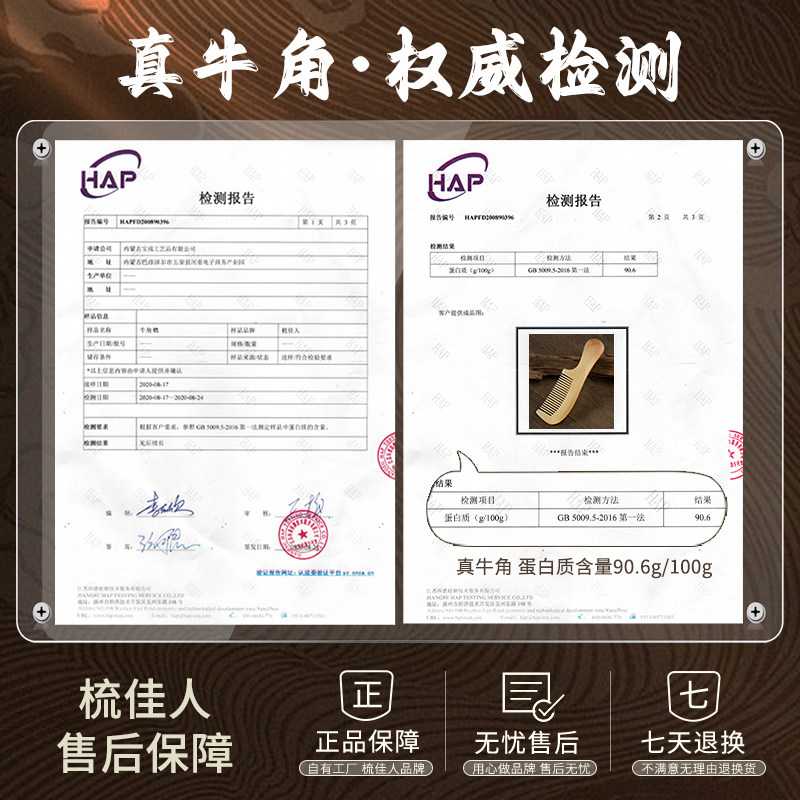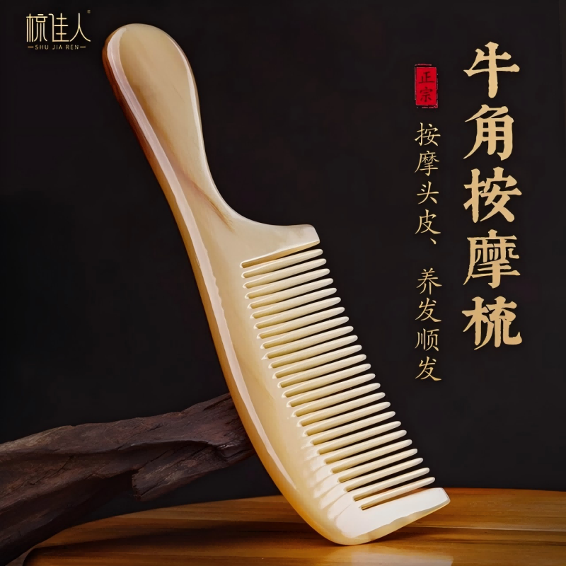 天然牛角梳子按摩头部经络正品官方旗舰店男女士家专用静电正宗白