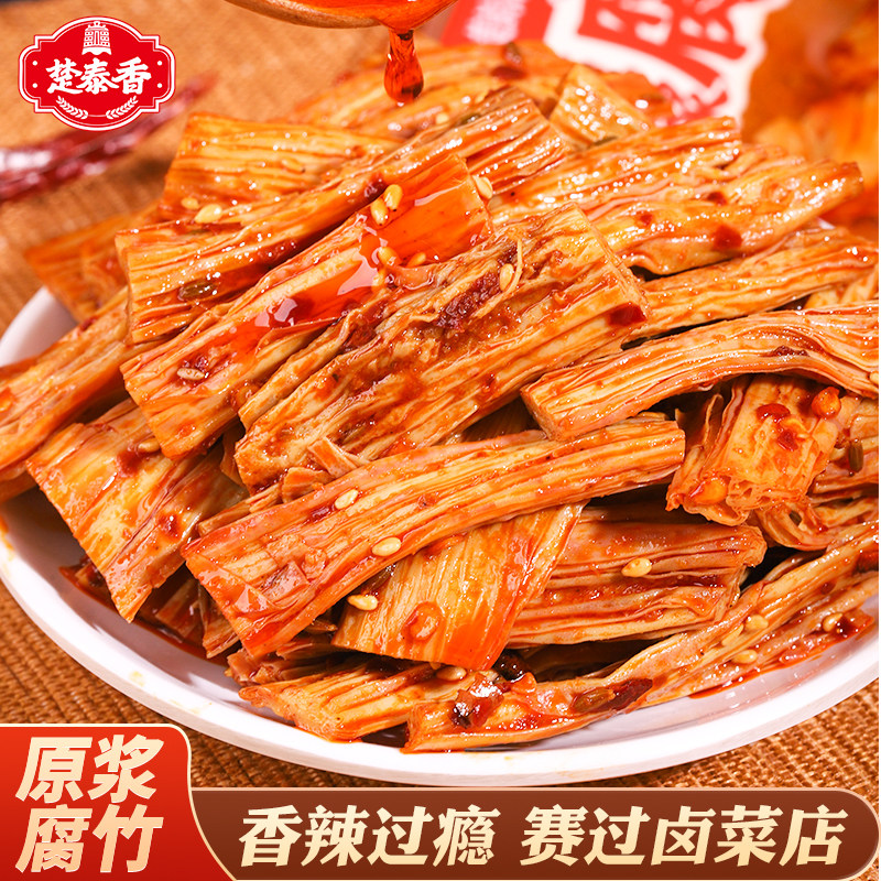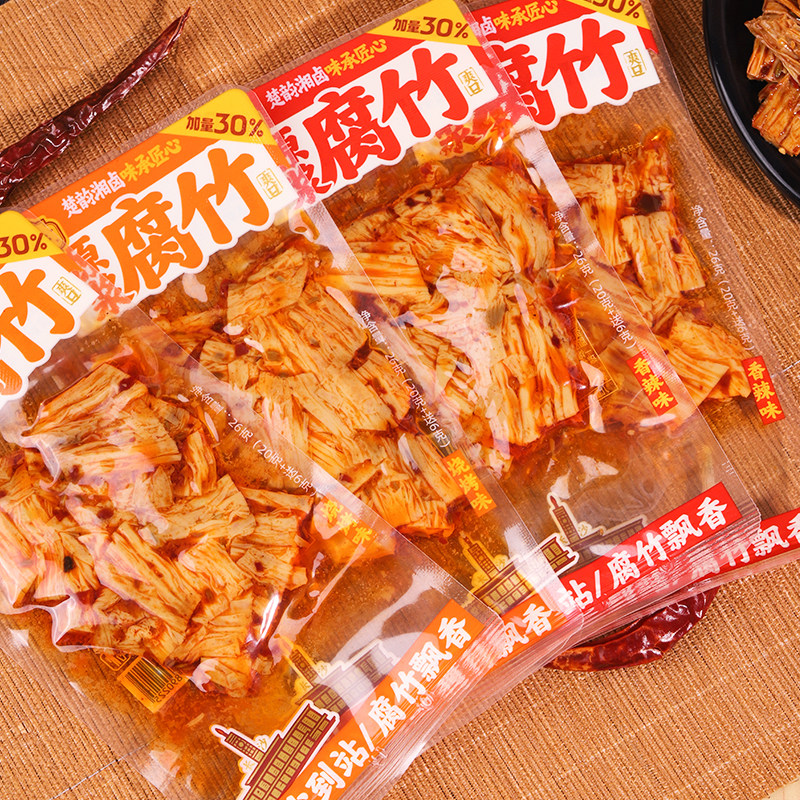 湖南特产捞汁腐竹网红辣条手工豆皮卷小吃解馋零食下酒菜香辣辣味