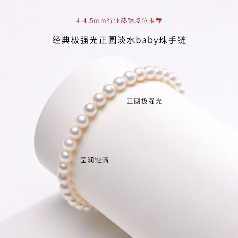 诸暨轻奢法式淡水珍珠手链4mm正圆baby珍珠精品手链s925银扣百搭