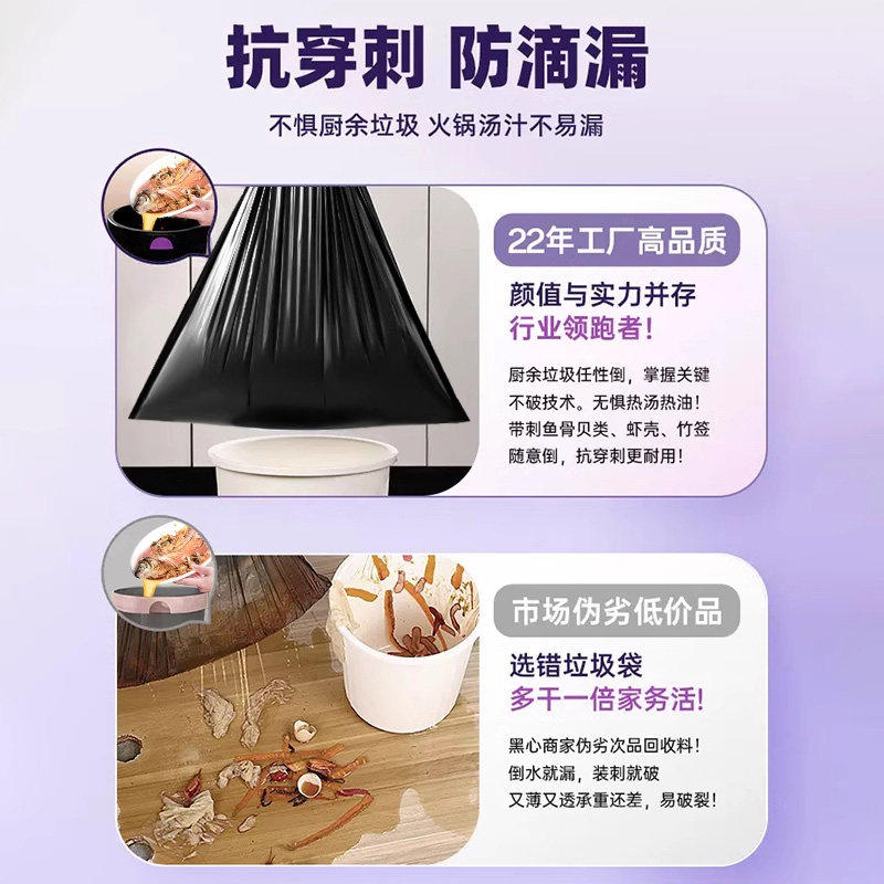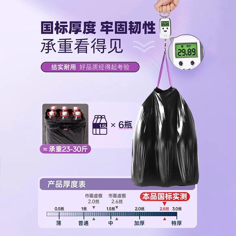 佳帮手垃圾袋加厚家用手提式黑色抽绳厨房用大号特厚实惠装塑料袋