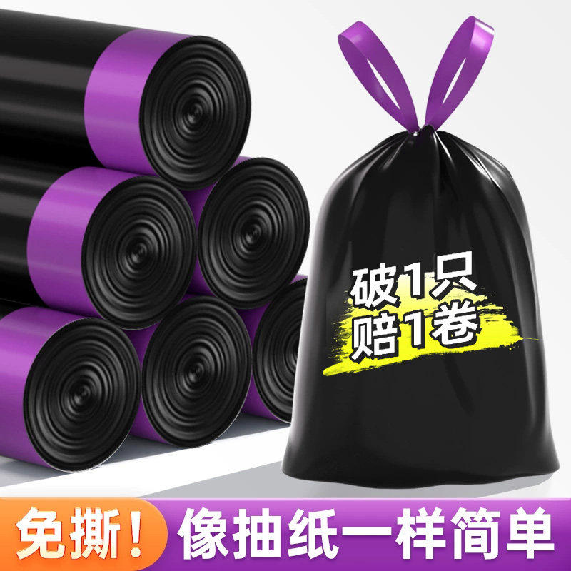 免撕加厚抽绳式垃圾袋一次性黑色家用手提式大号厨房塑料袋特厚
