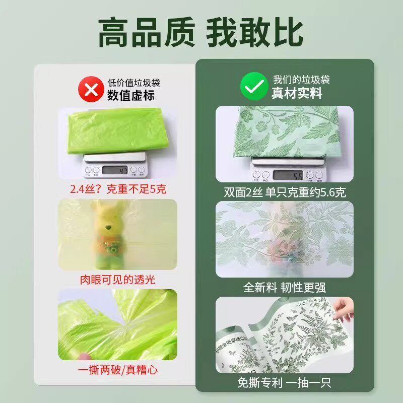 艾草味垃圾袋加厚家用手提式免撕厨房特厚大号抽绳塑料袋子办公室
