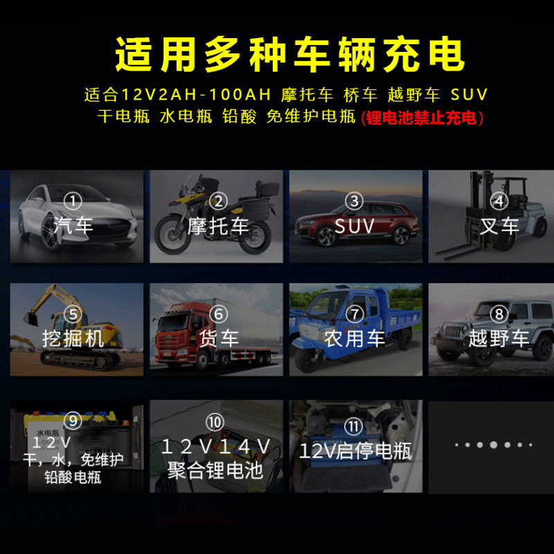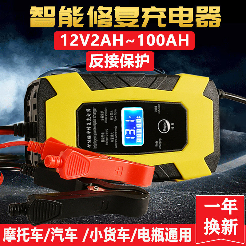 智能12v汽车电瓶充电器大功率摩托车蓄电池通用自动修复24V充电机
