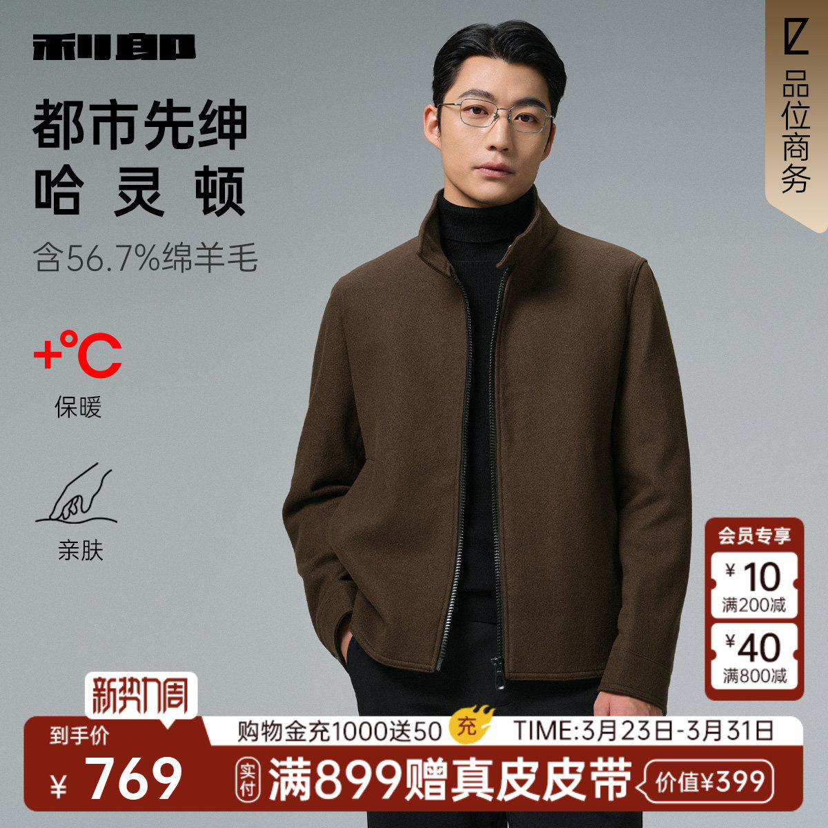 【哈灵顿】利郎毛呢外套男立领短款大衣冬季商务男装羊毛夹克