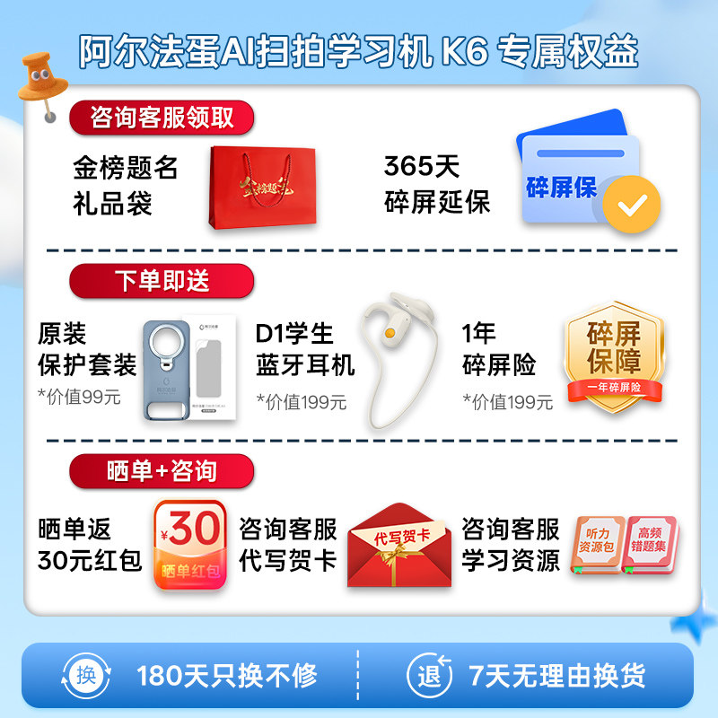 阿尔法蛋扫拍学习机K6全面屏小学初中高中学练机词典笔电子词典扫描翻译笔英语点读笔官方旗舰店单词笔中小学