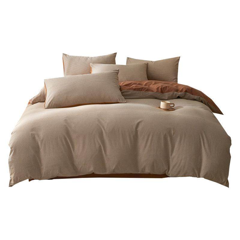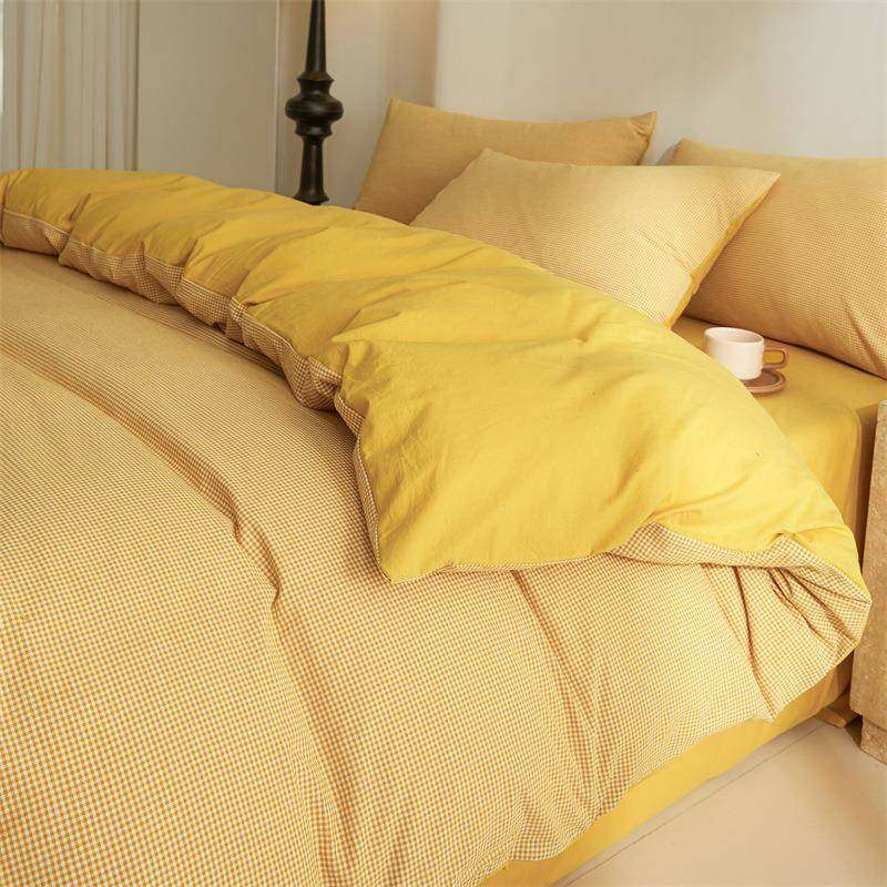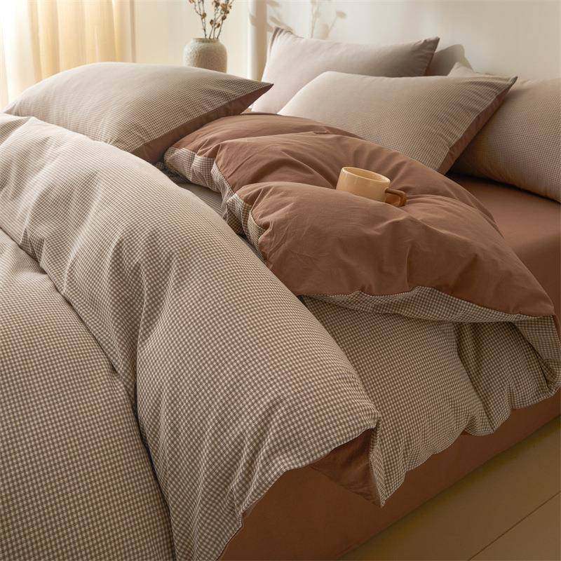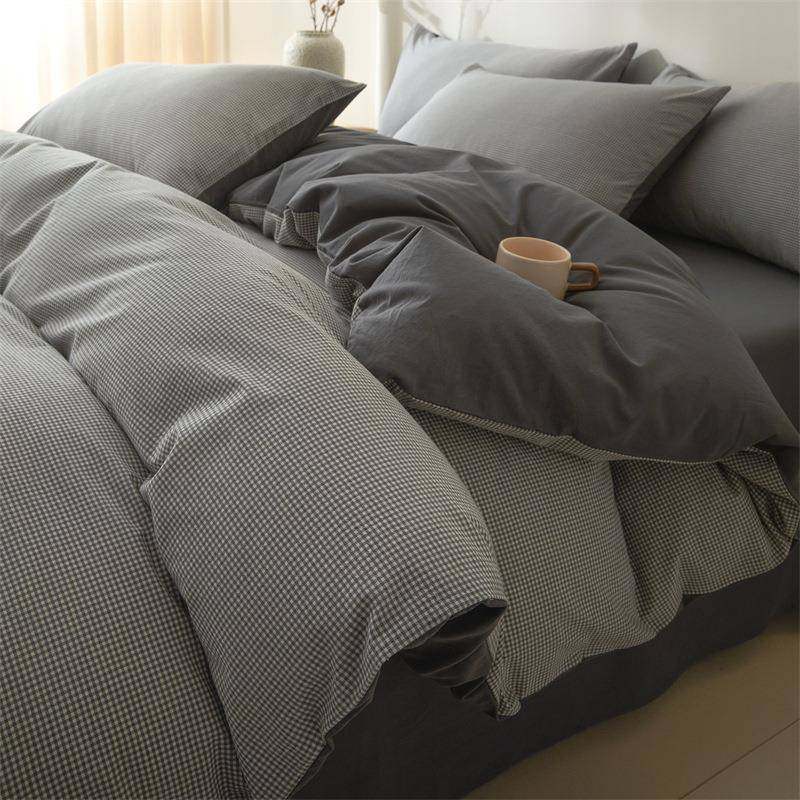简约格子全棉水洗棉四件套复古纯棉床单被套1.5m1.8床上用品厂家