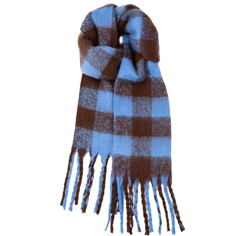 【王俊凯同款】骆驼围巾冬季女新年礼物保暖围脖男针织蓝色围巾