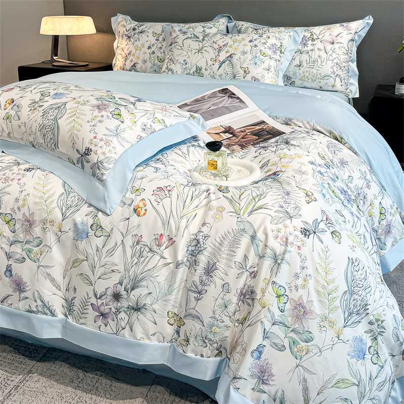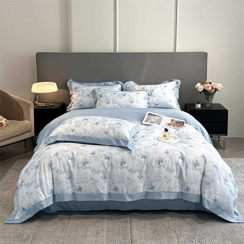 水洗冰丝数码印花宽边床笠四件套南通家纺床上用品床单枕套被套