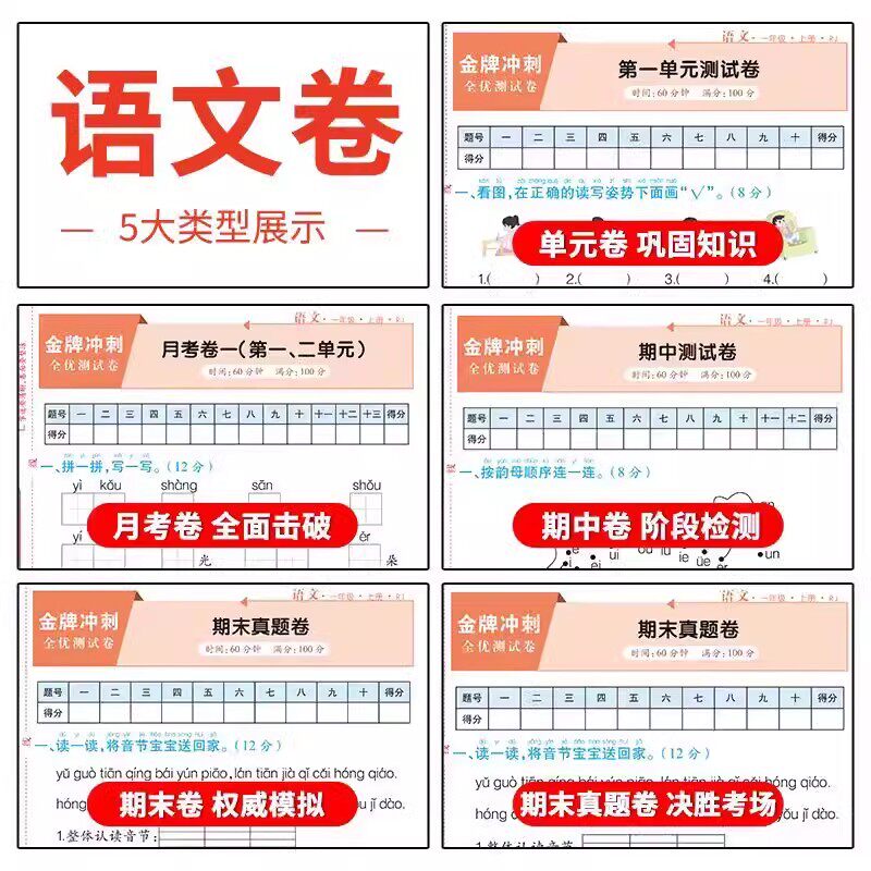金牌冲刺全优测试卷 一年级试卷二三四五六年级试卷上下册试卷测试卷全套人教版语文数学英语小学专项训练期中冲刺卷