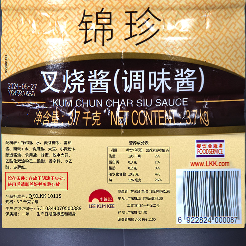 李锦记锦珍叉烧酱3.7kg 商用大桶餐饮装脆皮鸡翅腌制蜜汁排骨酱料