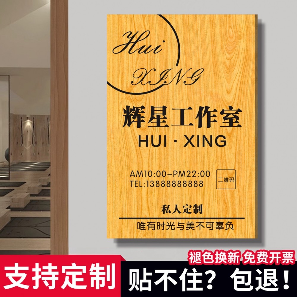 工作室logo门牌定制仿实木门牌创意牌匾美甲美睫美容院店铺招牌木质亚克力展示牌服装店门头招牌营业时间标牌