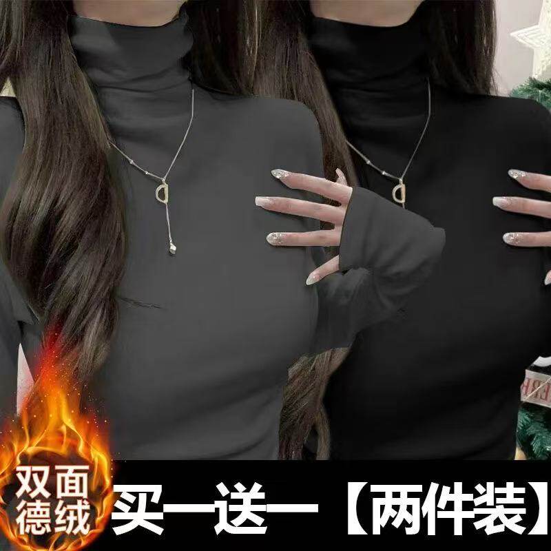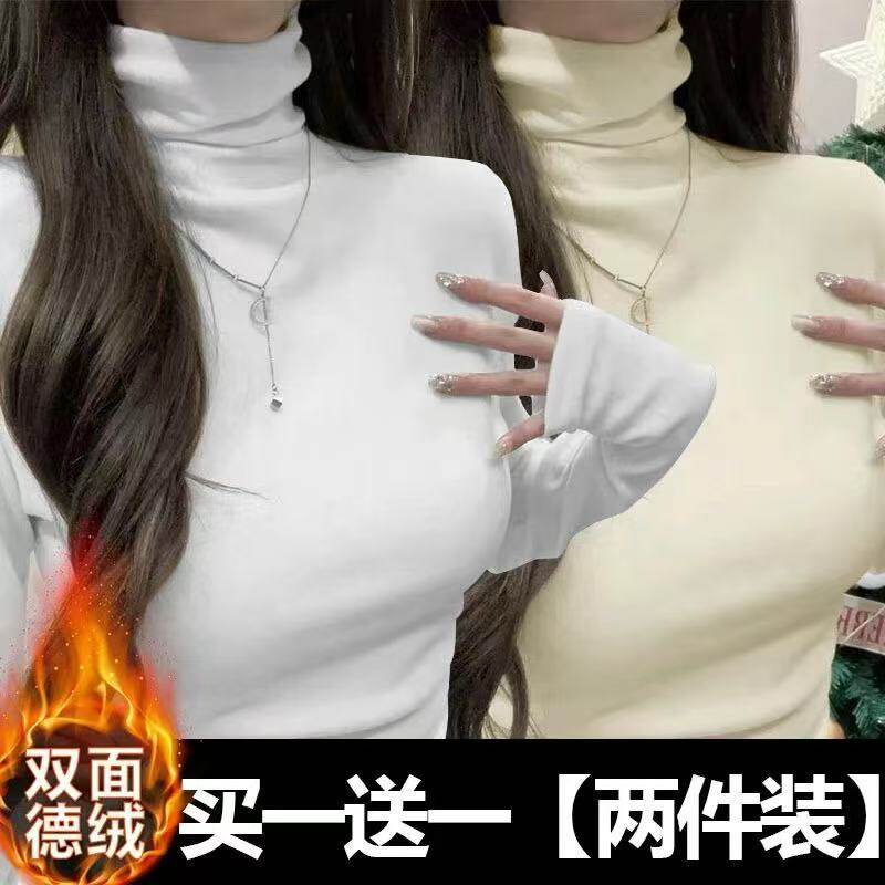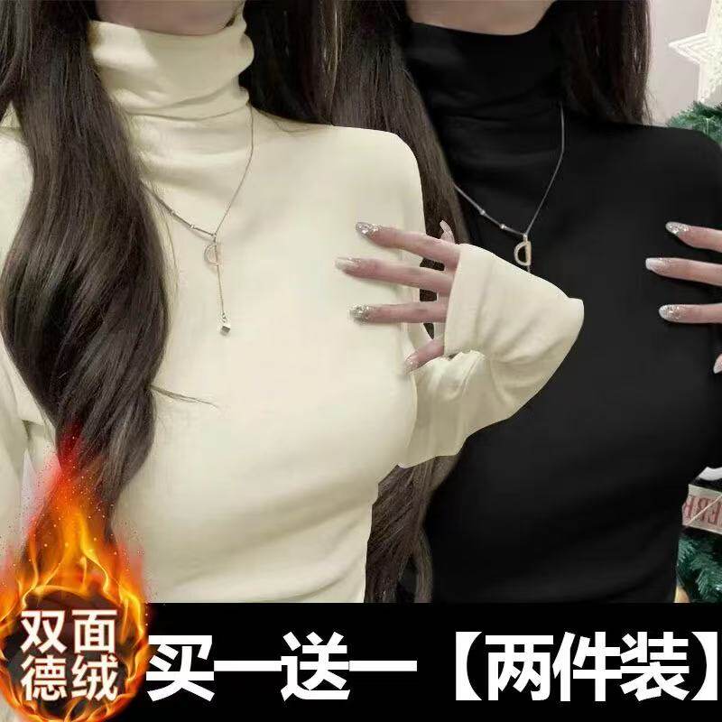 高领纯色德绒打底衫女秋冬大码高级感加绒厚2025年新款保暖上衣D