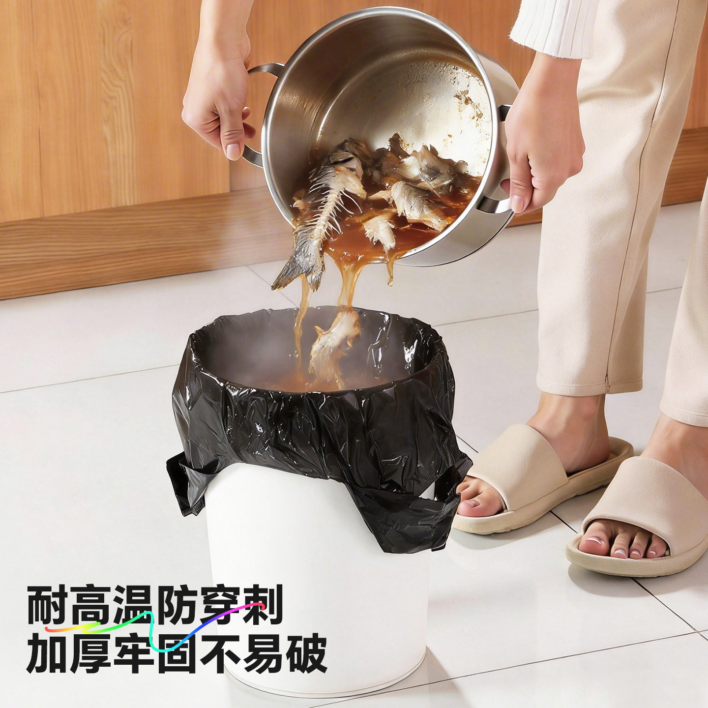 佳帮手抽绳式垃圾袋家用加厚手提式厨房钢袋大号印花拉级桶塑料袋