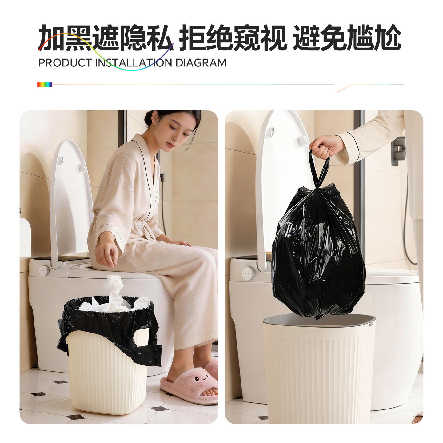 3知洁加厚大号免撕抽绳垃圾袋挂抽取式家用黑色特厚卫生间清洁袋