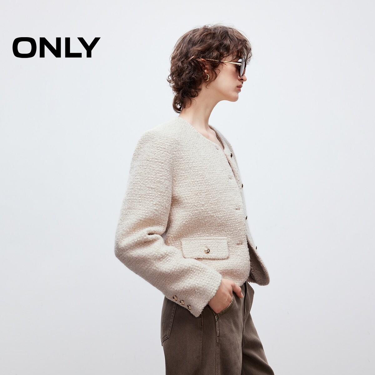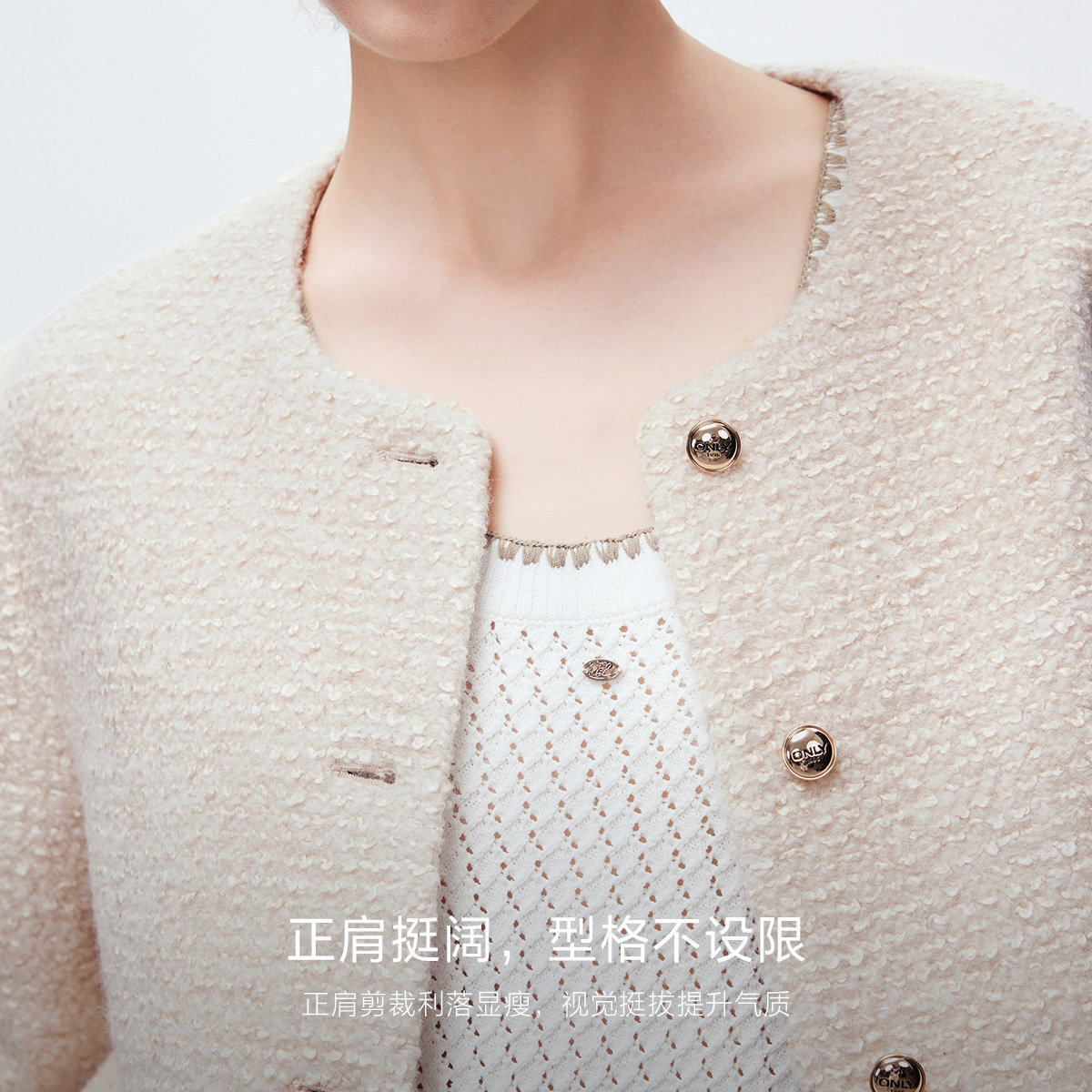 ONLY春季优雅气质正肩修饰腰身口袋装饰小香风毛呢外套女