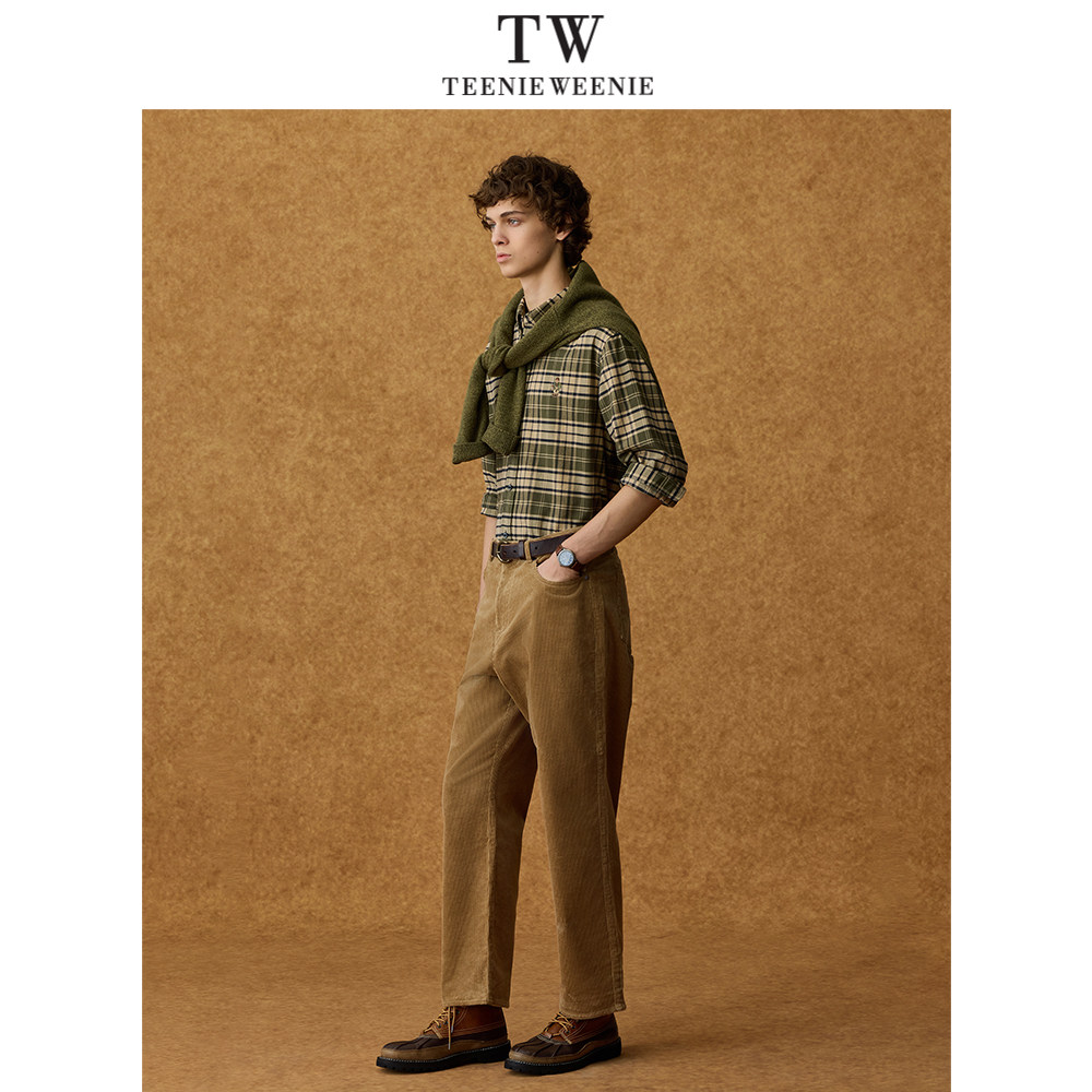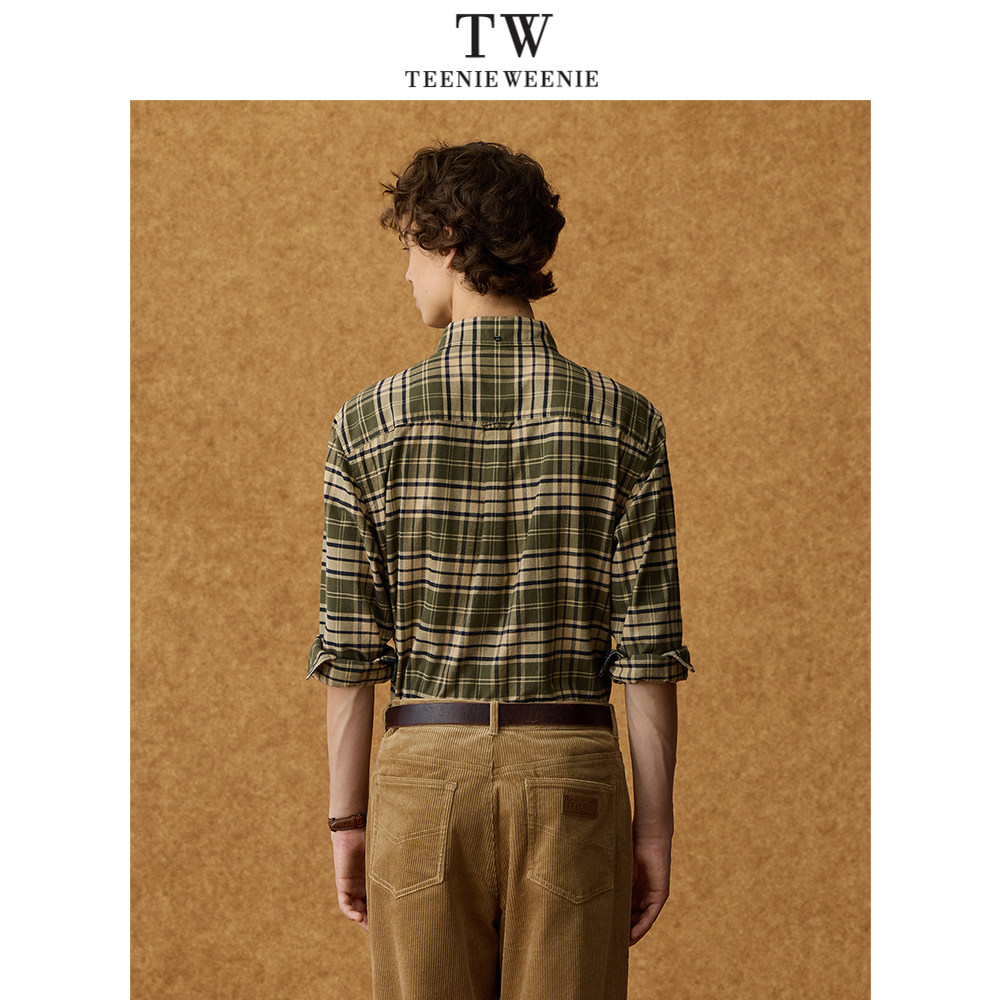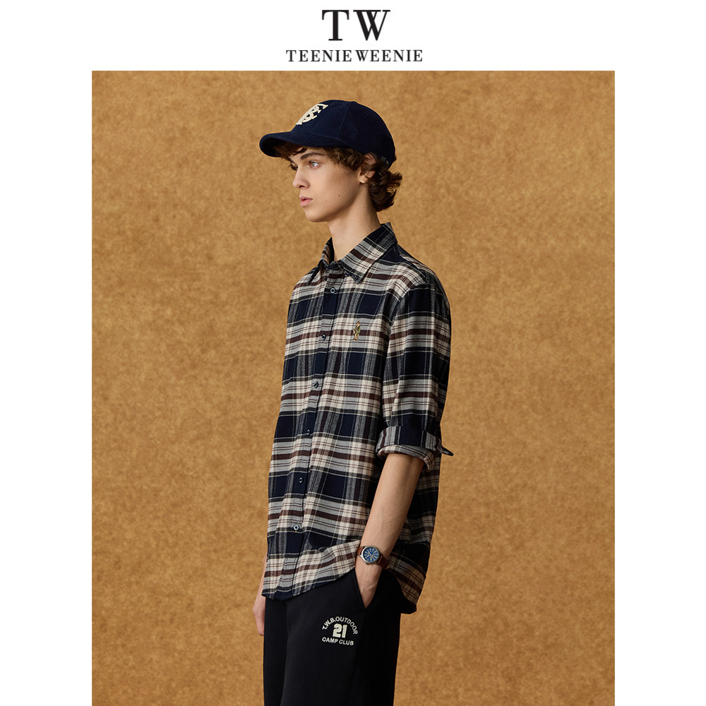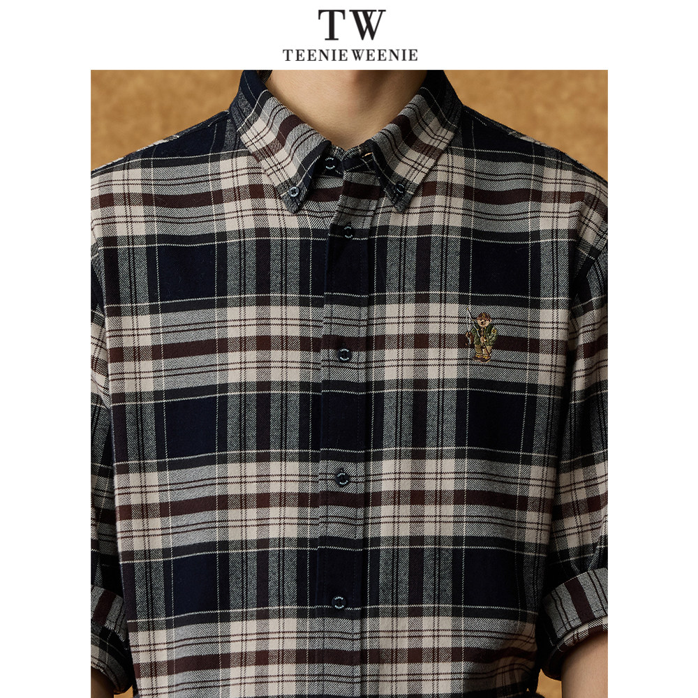 Teenie Weenie小熊男装熊刺绣宽松翻领简约通勤休闲格纹衬衫