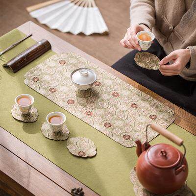 知舍茶席云松茶席织造手工布艺桌旗中国传统色传统纹样双面印花